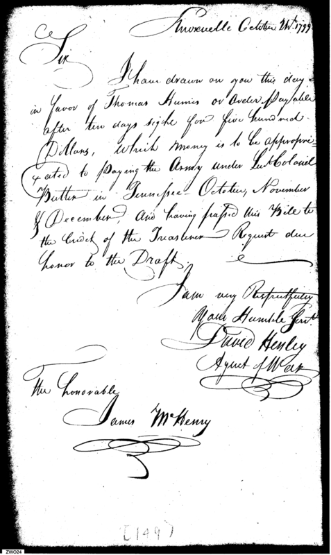 - In source: Collection: Letters Sent by David Henley, Agent of the War Department, May 1, 1799-May 7, 1800. (RG217)