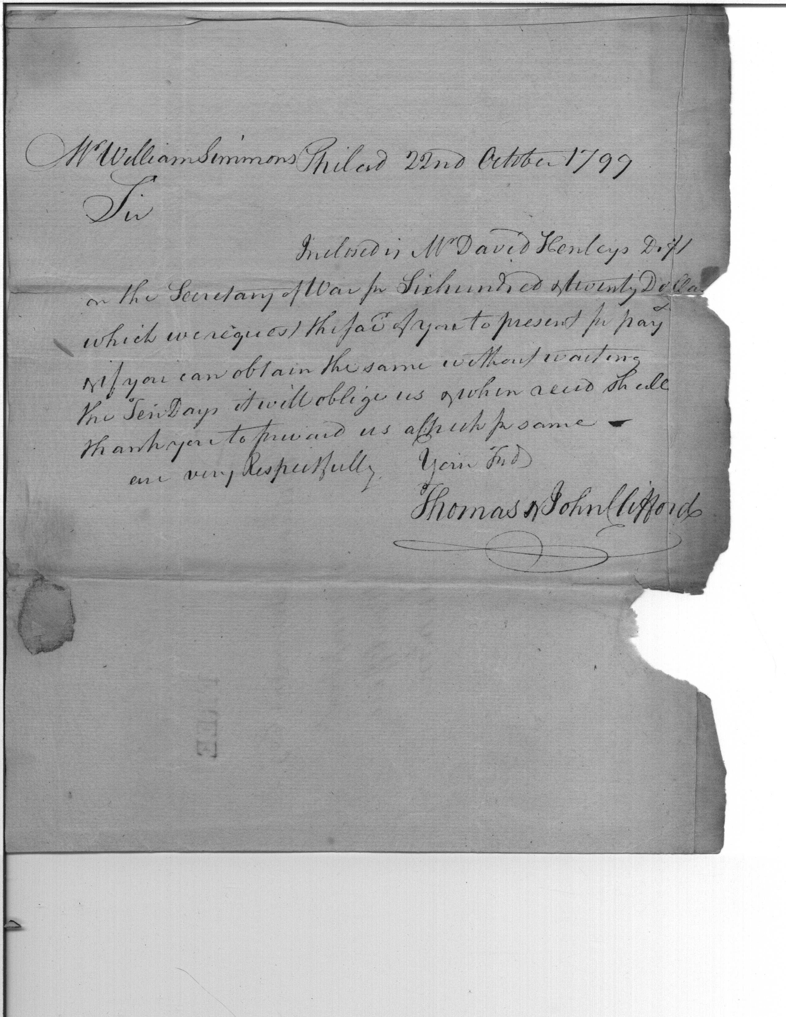 - Document: David Henley enclosed draft on Secretary of War