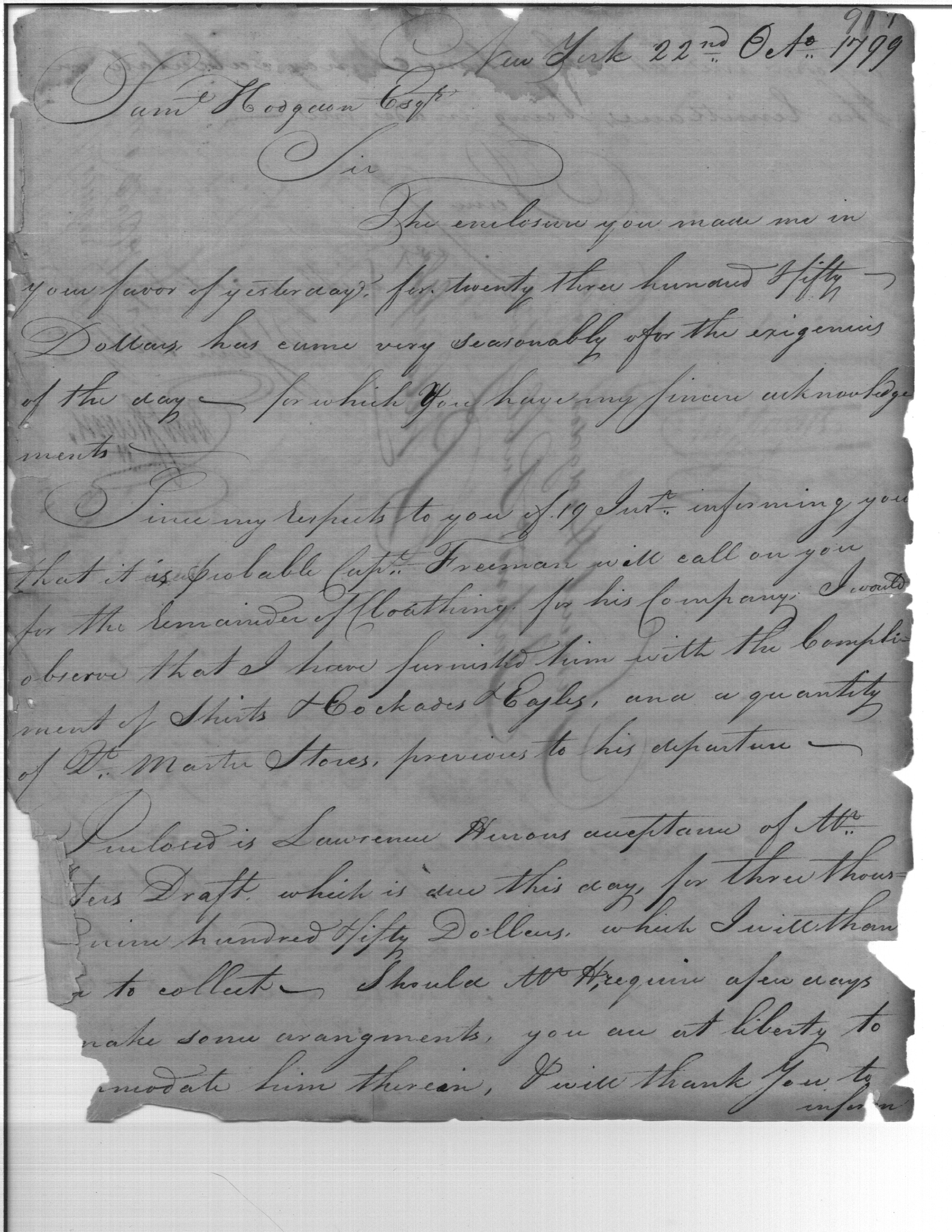 - Document: Remittances; Clothing Issued Captain Freeman