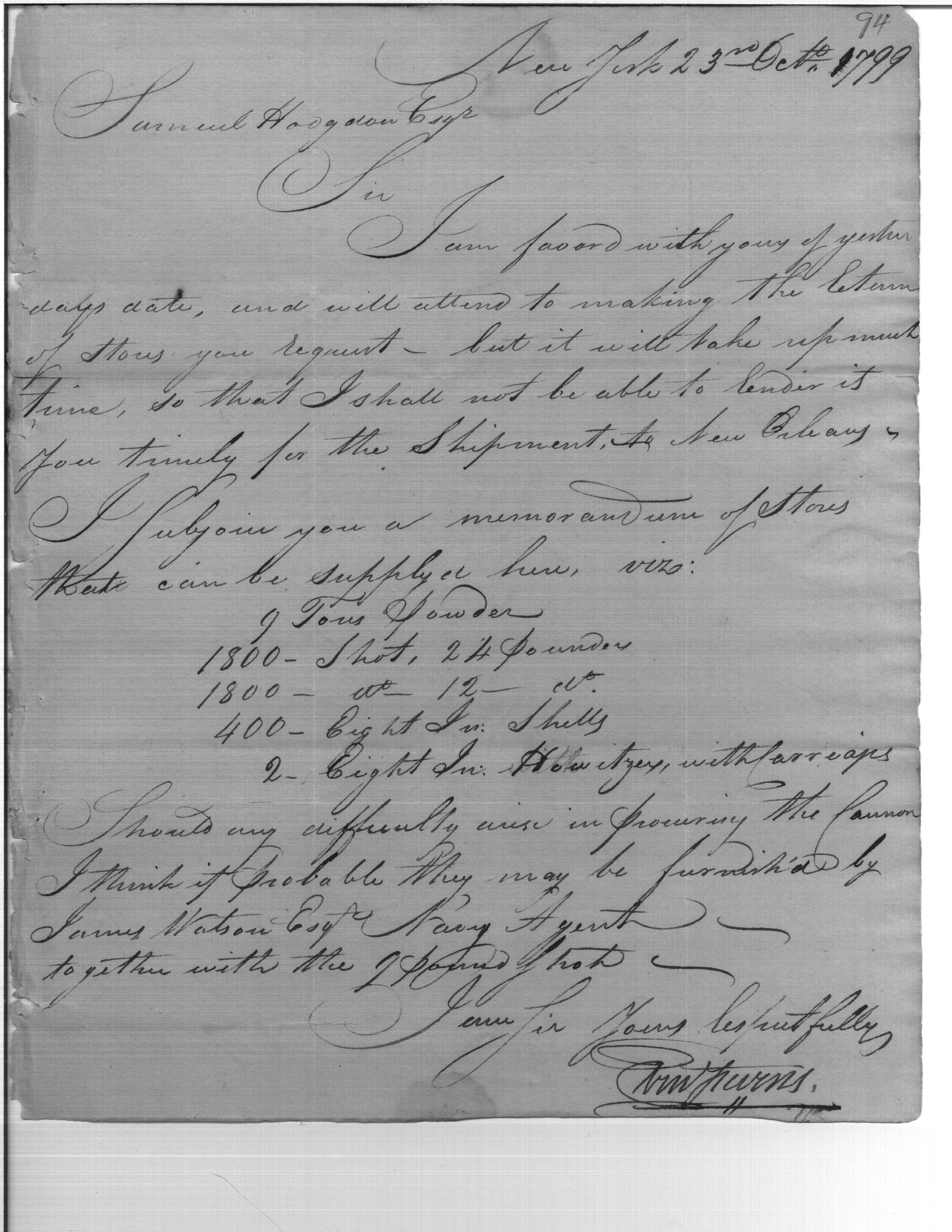 - Document: Return of stores to be shipped to New Orleans