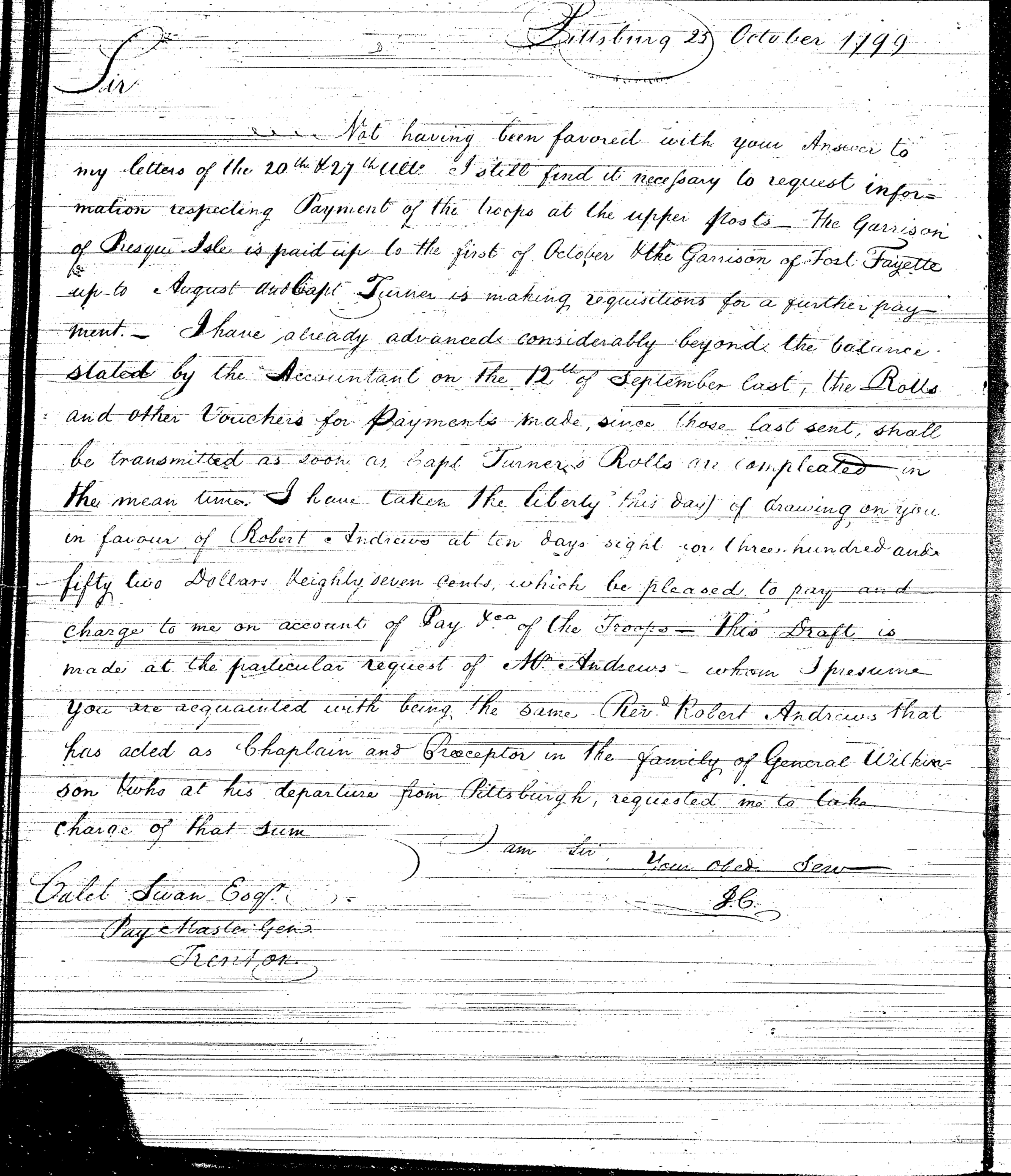 - Document: Major Craig discusses pay and accounting with Caleb Swann