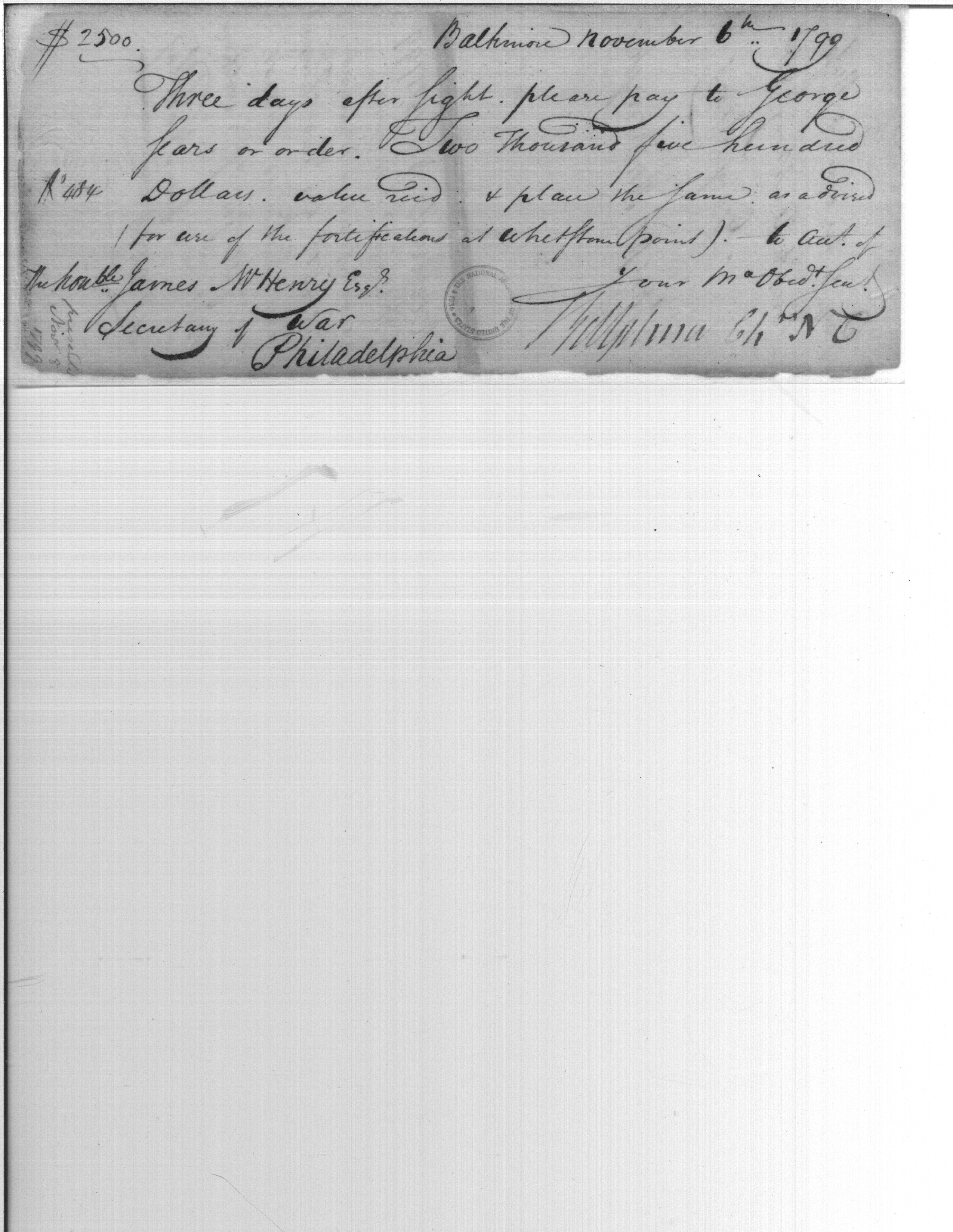- Document: Payment to George Sears for fortifications at Whetstone Point, Baltimore