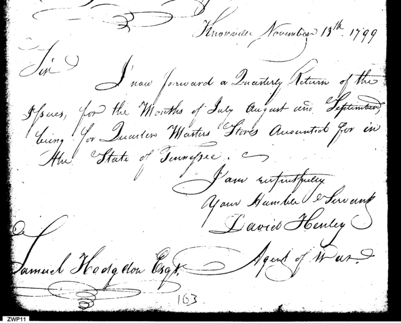 - In source: Collection: Letters Sent by David Henley, Agent of the War Department, May 1, 1799-May 7, 1800. (RG217)