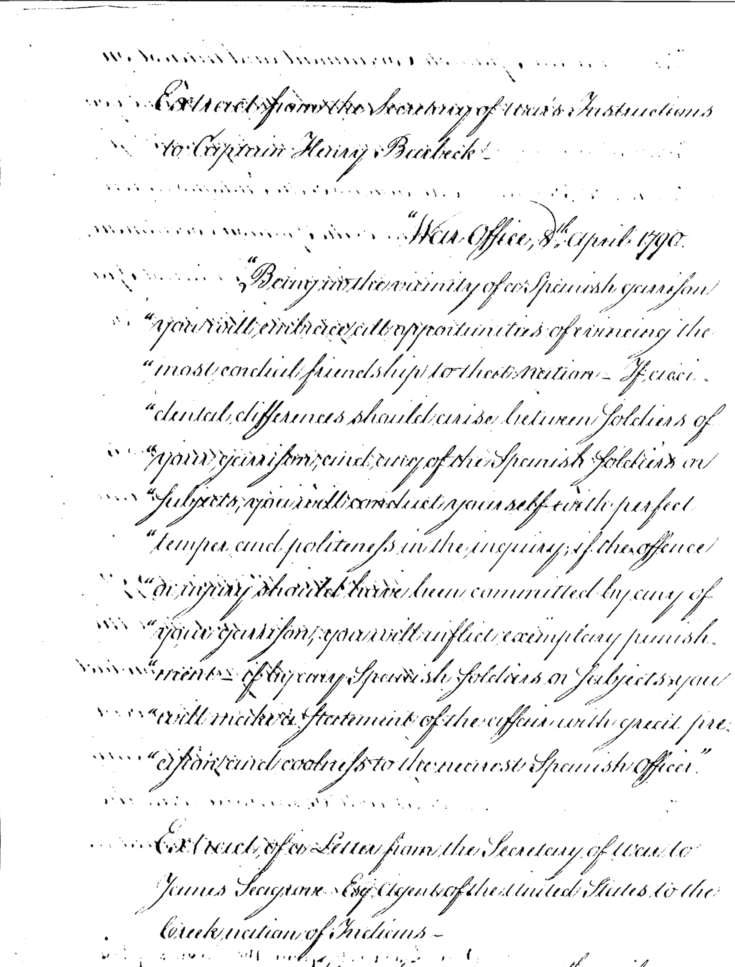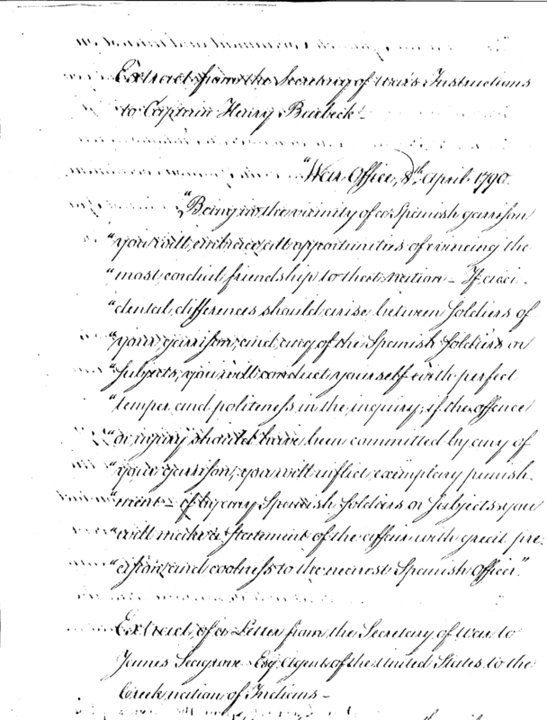 - Document: Instructions to Captain Henry Burbeck to evince friendly relations with Spain