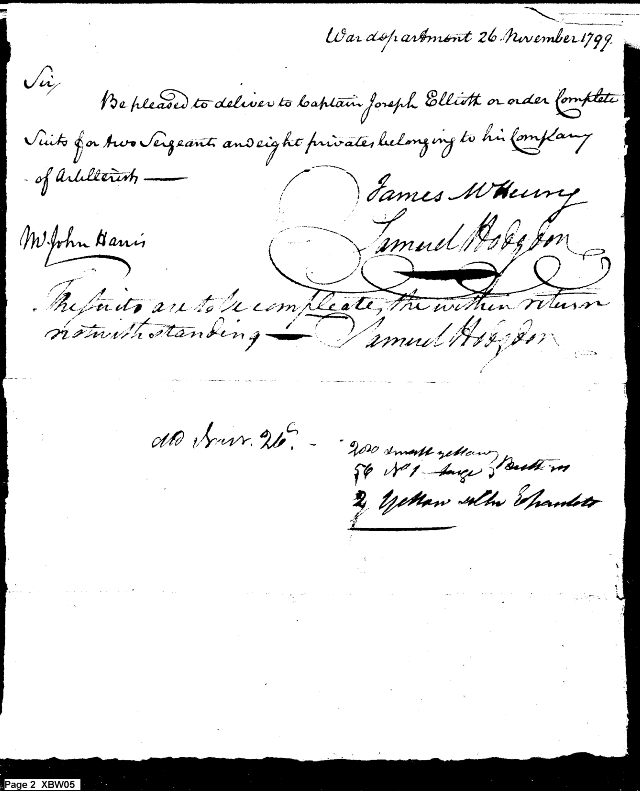 - Document: Request for Issue of Artillerists' Clothing, With Return Thereof