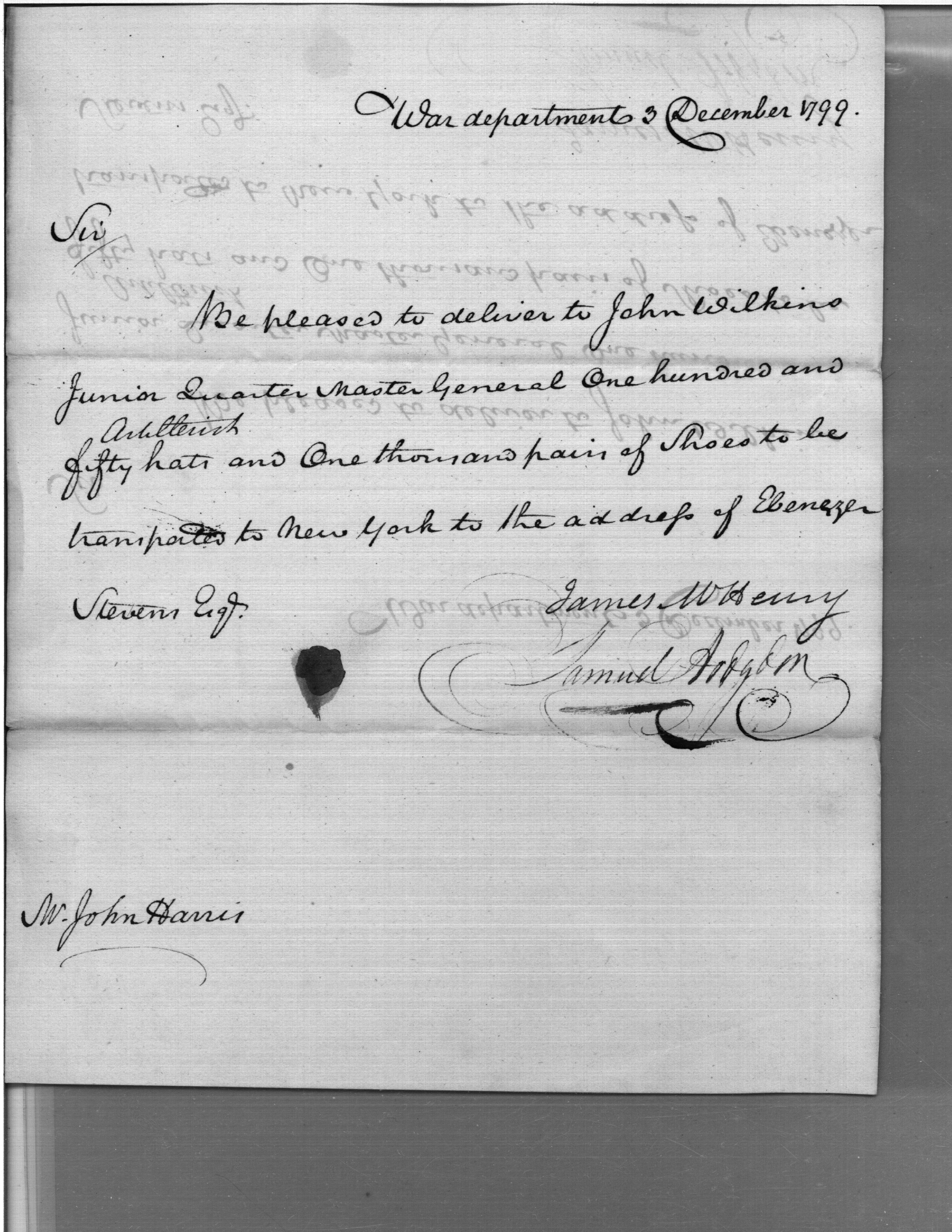 - Document: Request for Issue of Artillerists' Hats & Shoes for New York Shipment