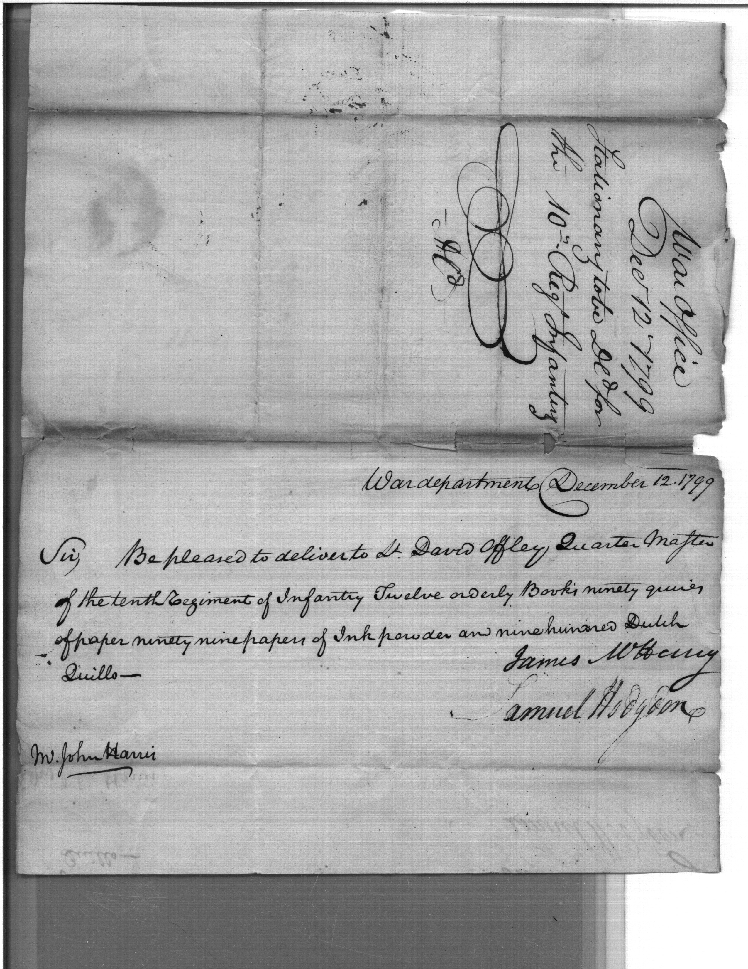 - Document: Request for Issue of Writing Materials for 10th Regiment