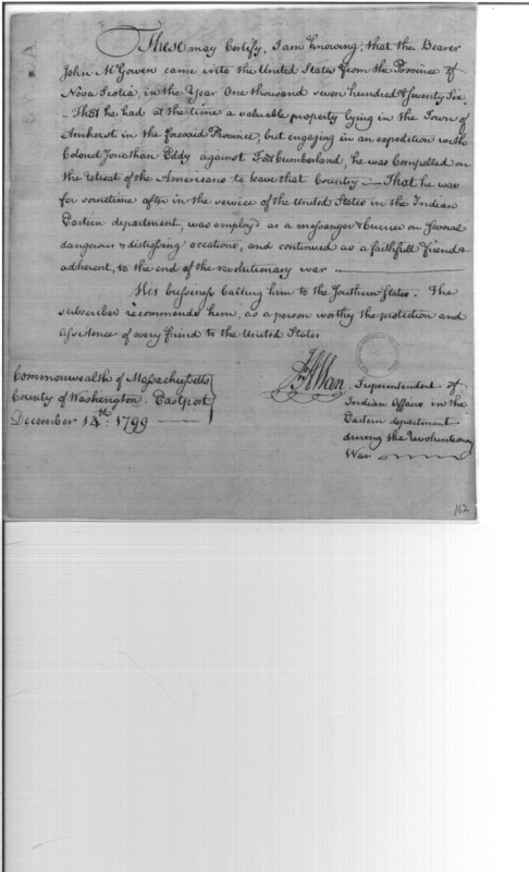 - Document: Certificate in Favor of John McGowen, Nova Scotia Refugee
