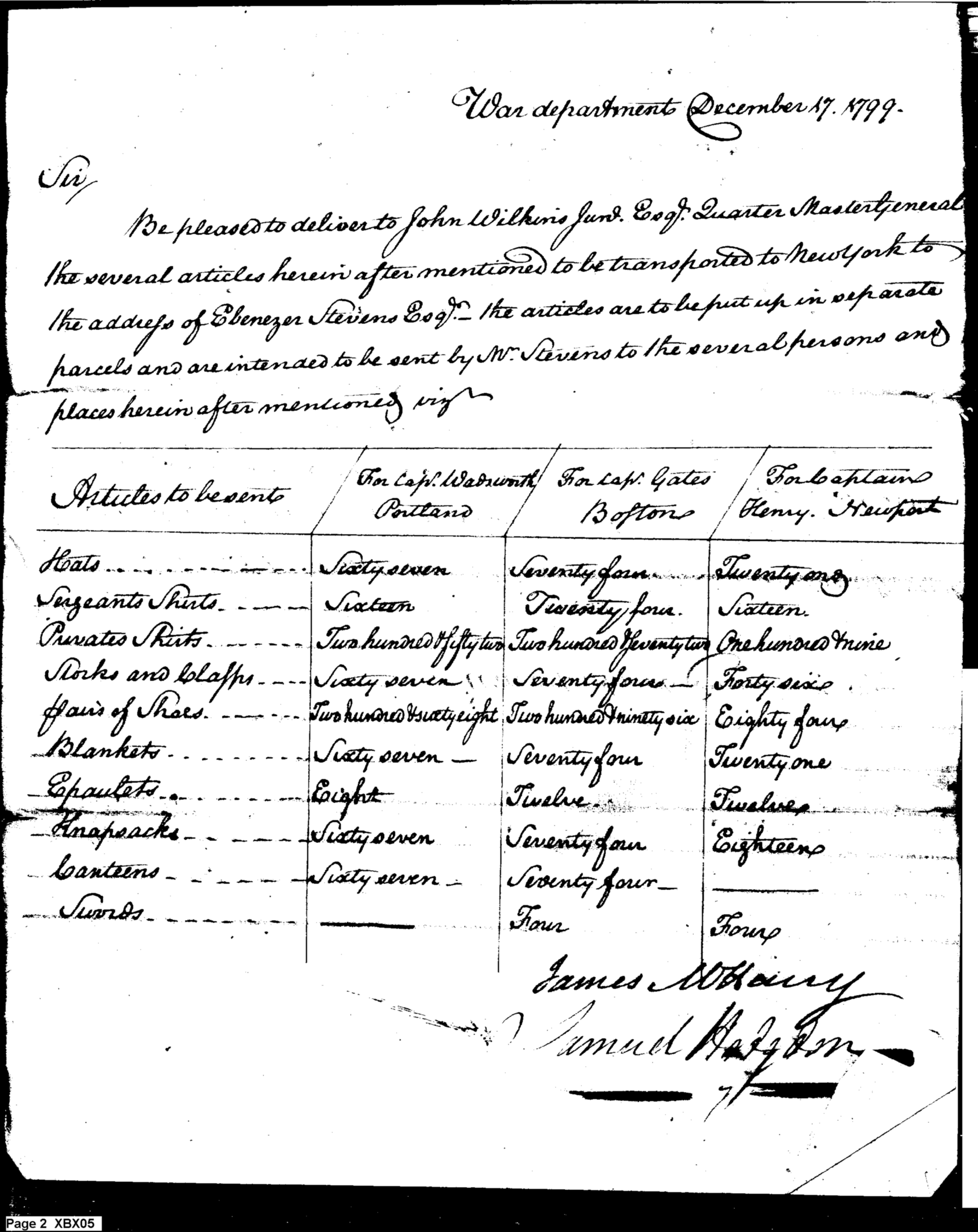 - Document: Request for Issue of Clothing, Equipment & Swords to Ports North of New York