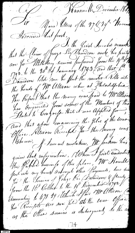 - Document: Responds to Letters about Military Services for George Lee Donaldson, 1792-93