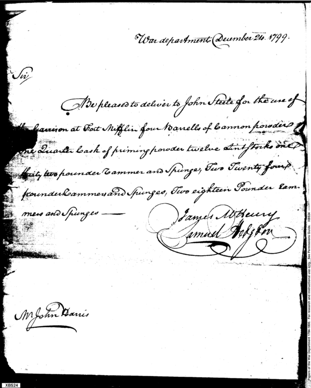 - Document: Request for Issue of Cannon Implements for Fort Mifflin