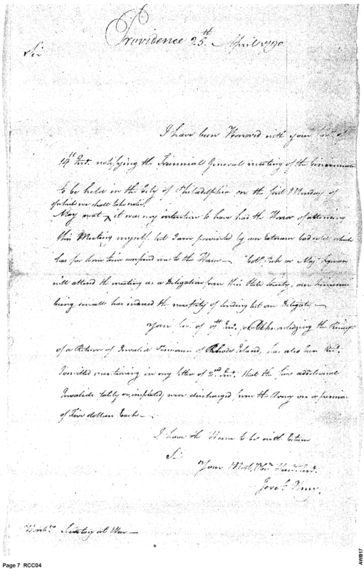 Document ViewerRegarding the Society of the Cincinnati, Invalid Pensions, & Rhode Island Politics