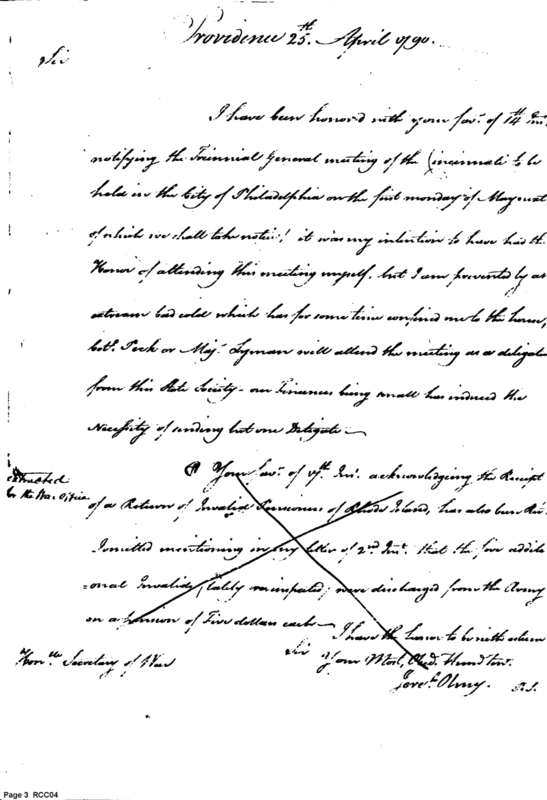 - Document: Regarding the Society of the Cincinnati, Invalid Pensions, & Rhode Island Politics