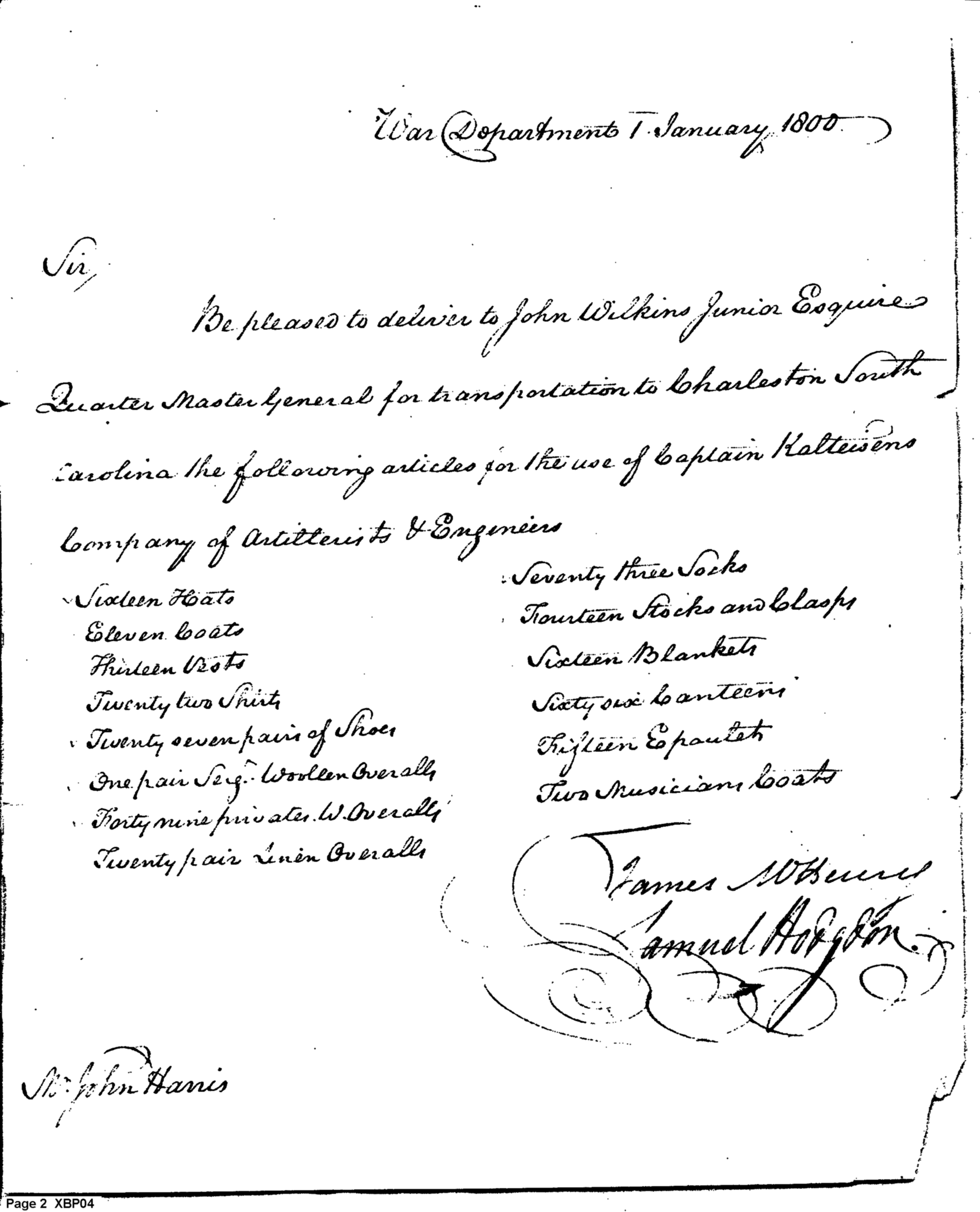 - Document: Request for Issue of Clothing & Equipment for Charleston Troops