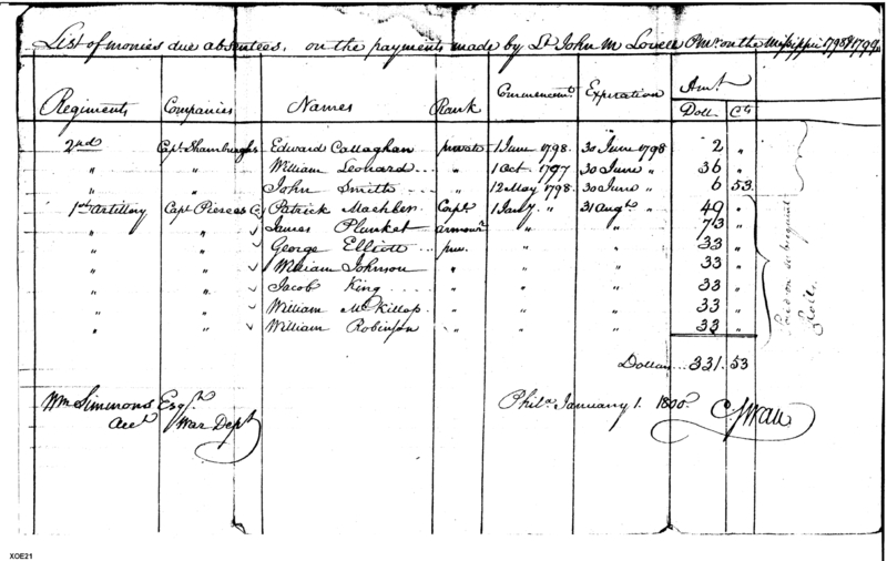 - In source: Collection: Post Revolutionary War Papers, 1784-1815. (RG94)