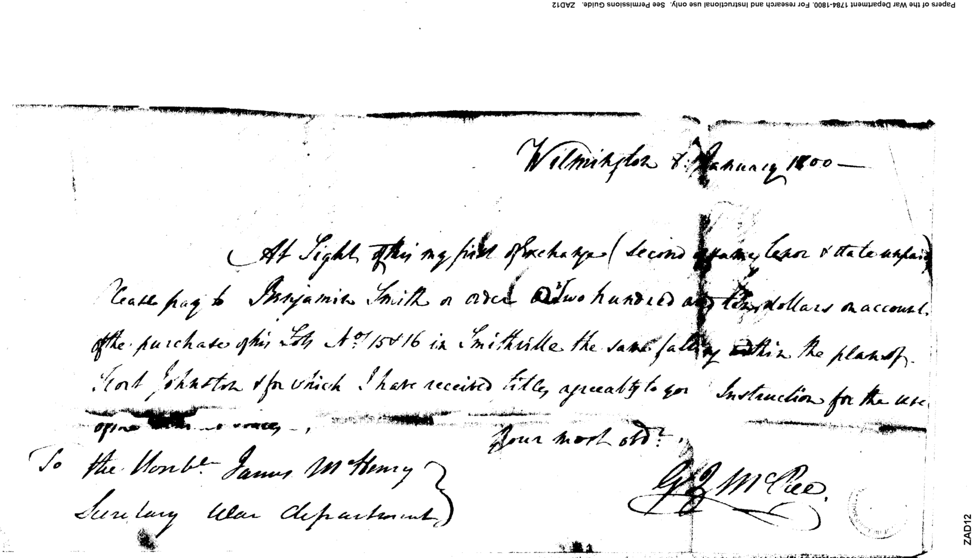 - Document: Payment to Benjamin Smith for Purchase of his lots in Smithville, Fort Johnston