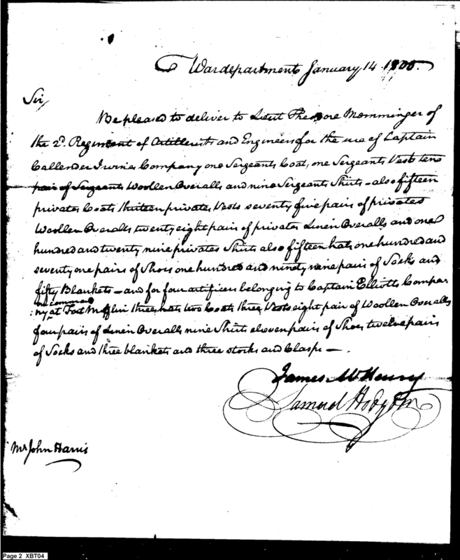 - Document: Request for Issue of Clothing to Artillerists, Engineers, & Artificers