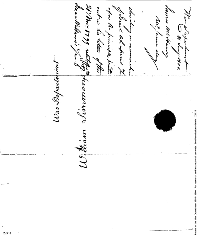 - In source: Collection: Post Revolutionary War Papers, 1784-1815. (RG94)