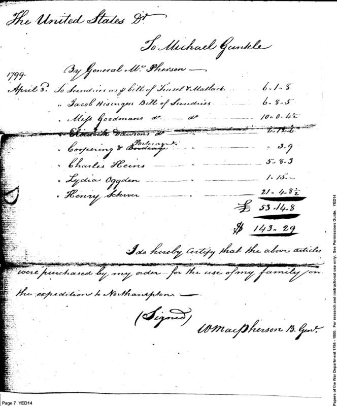 - Document: Brigadier General Macpherson's pay and entitlements on Northampton Expedition