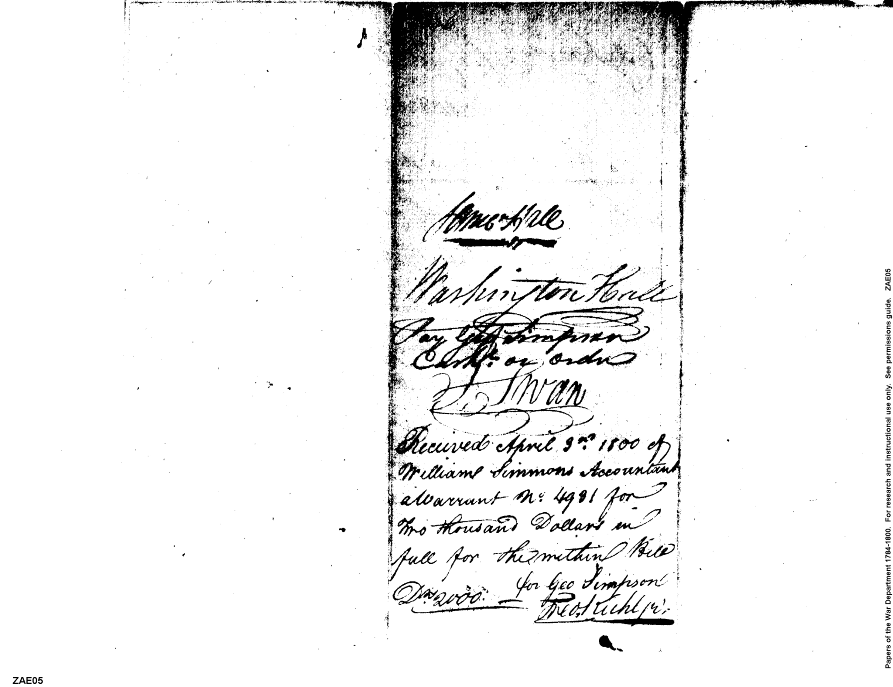 - In source: Collection: Receipts for Moneys Advanced (Advances), 1793-1855. (RG217)