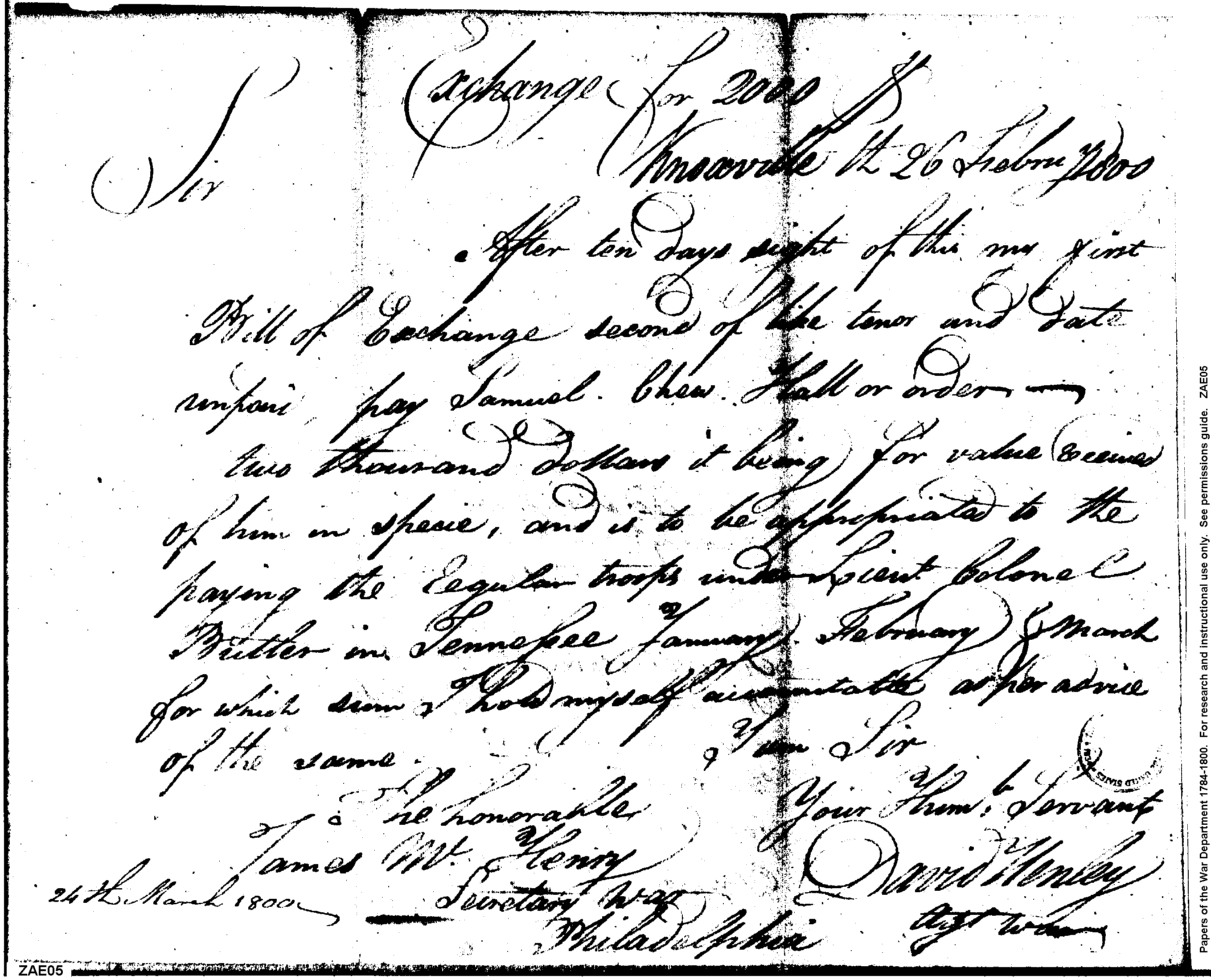 - Document: Requests Payment for Samuel Chew Hall to Pay Troops under Lieutenant Colonel Butler