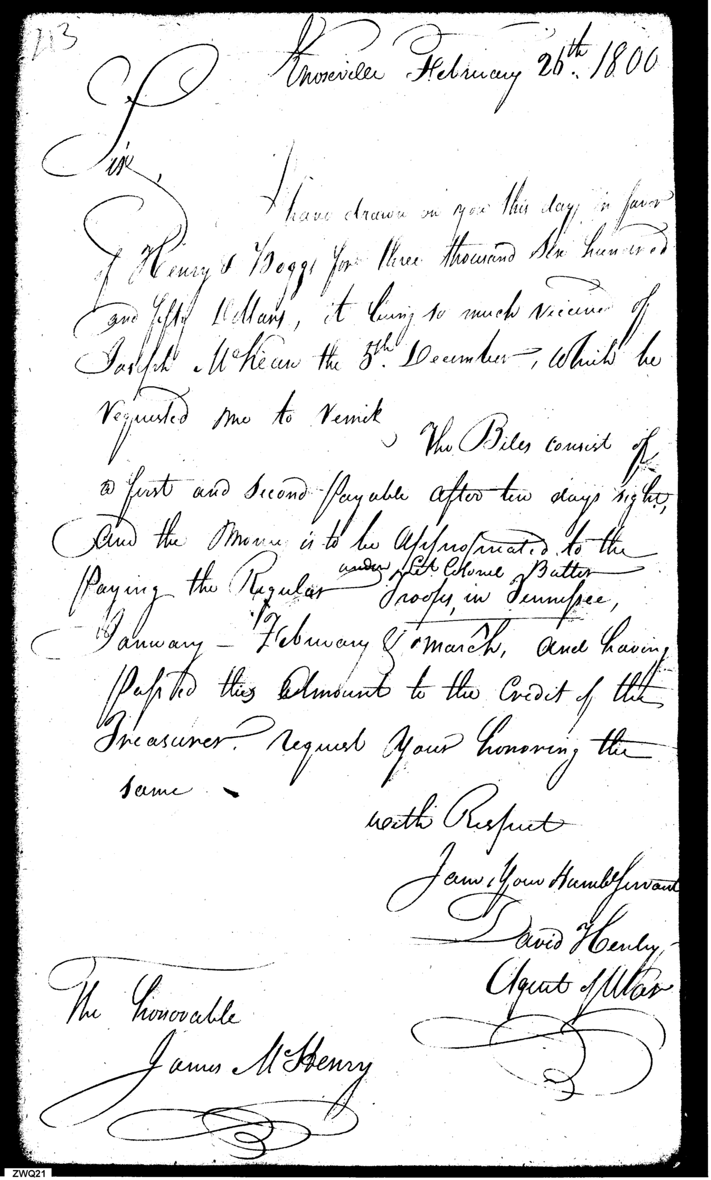 - Document: Requests Payment for Henry & Boggs to Pay Troops in Tennessee