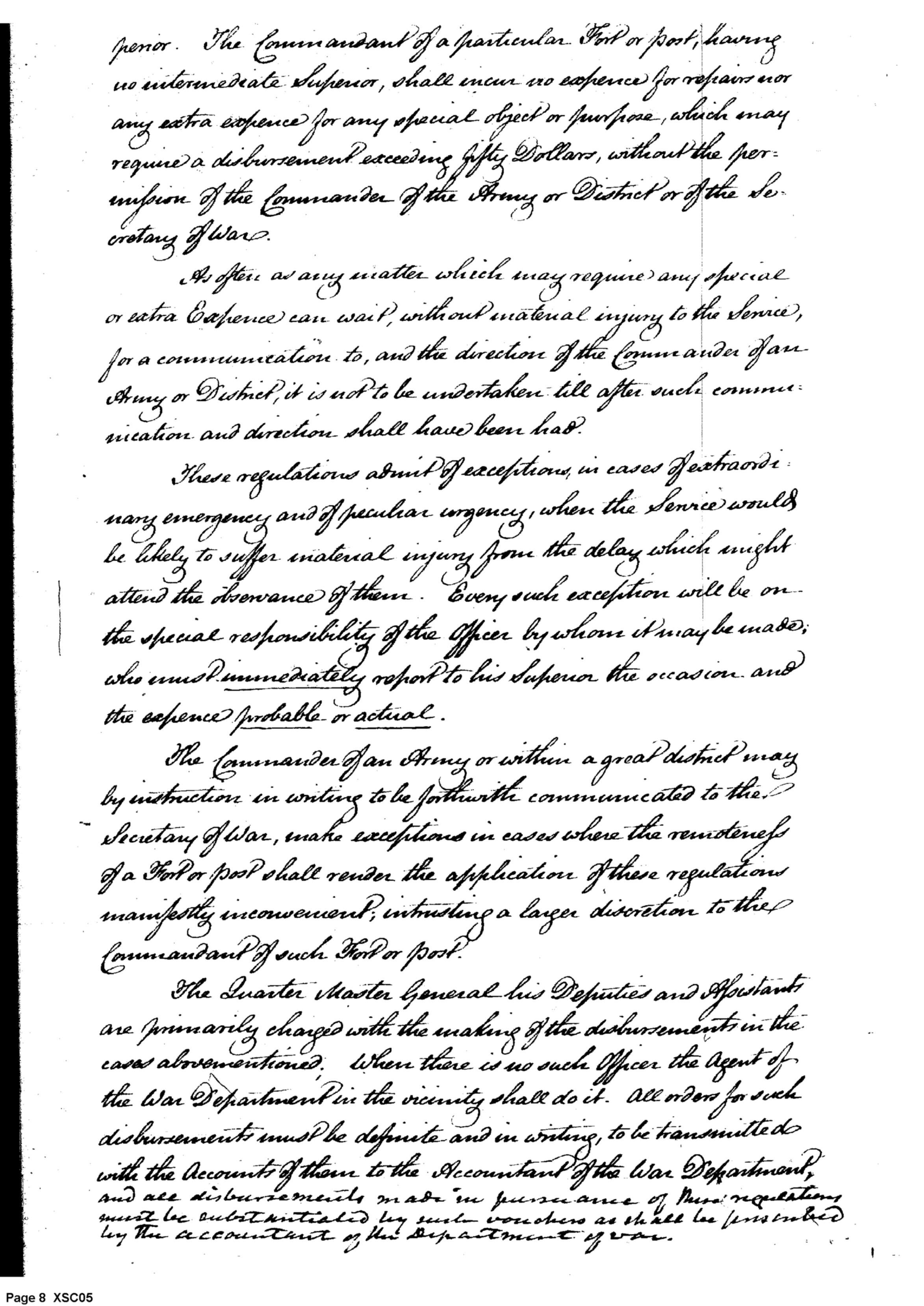 - Document: Regulations Regarding Certain Supplies and Respecting Objects of Special and Extra Expense