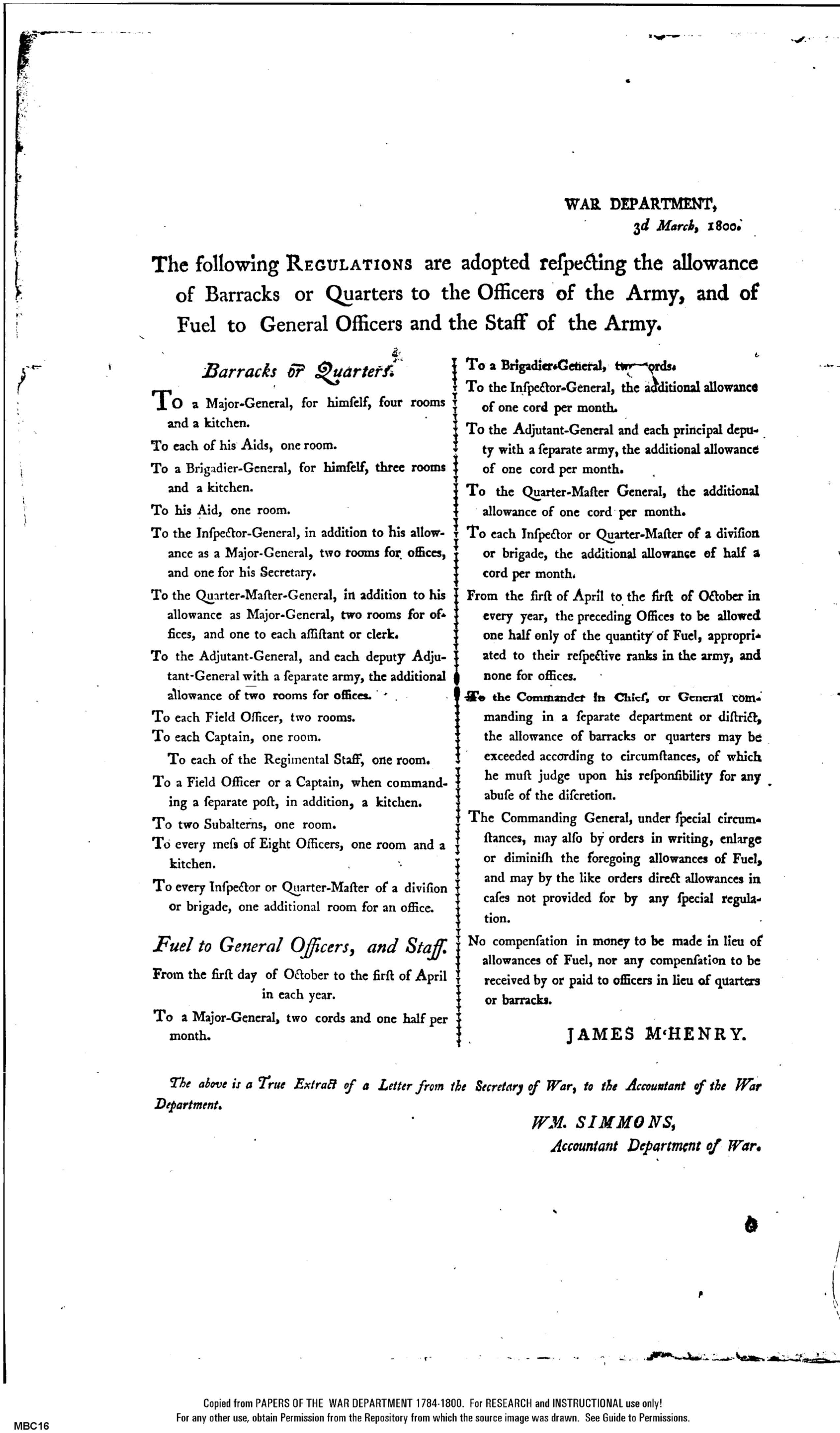 - Document: Copy of Regulations for Barracks or Quarters of Officers