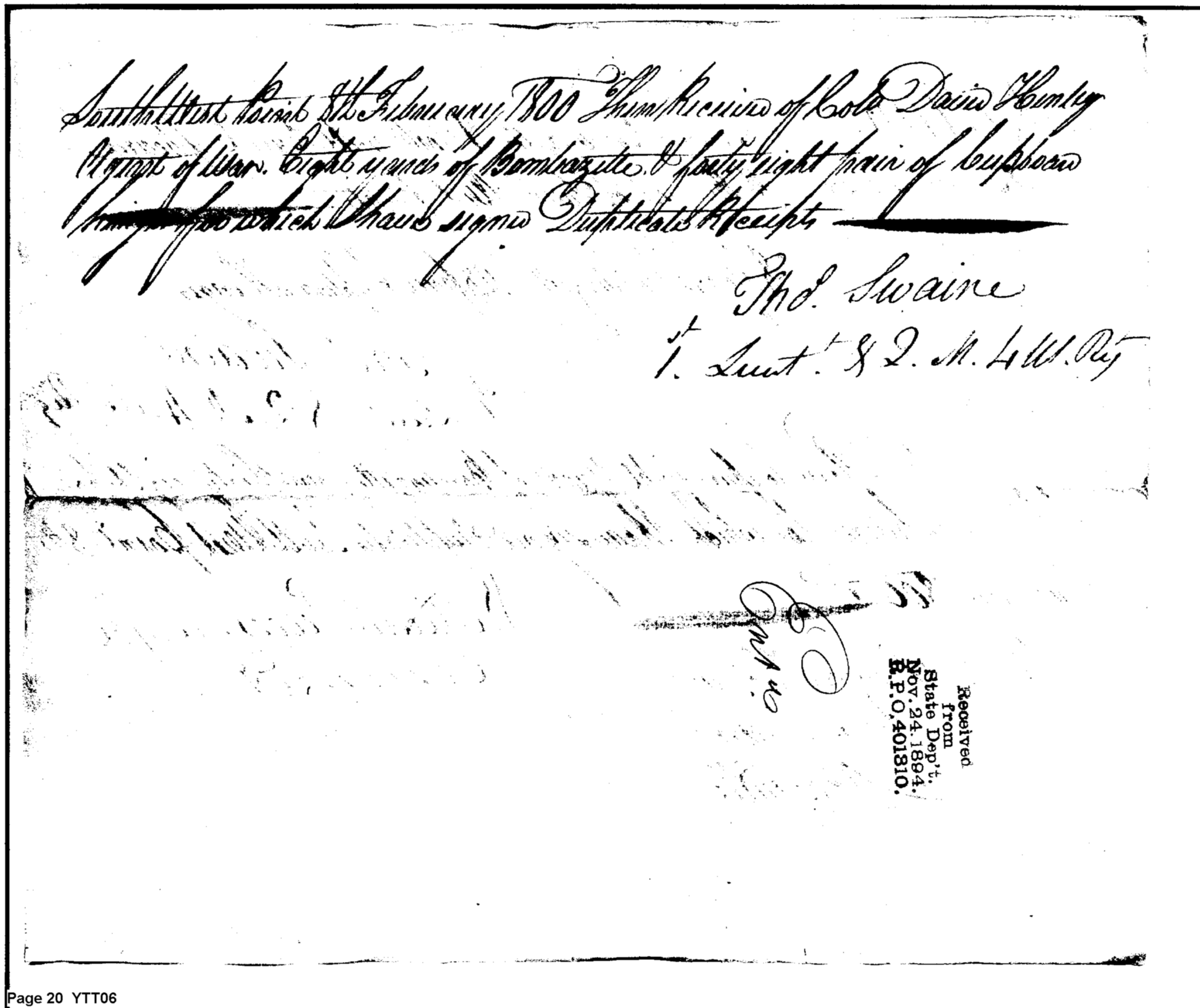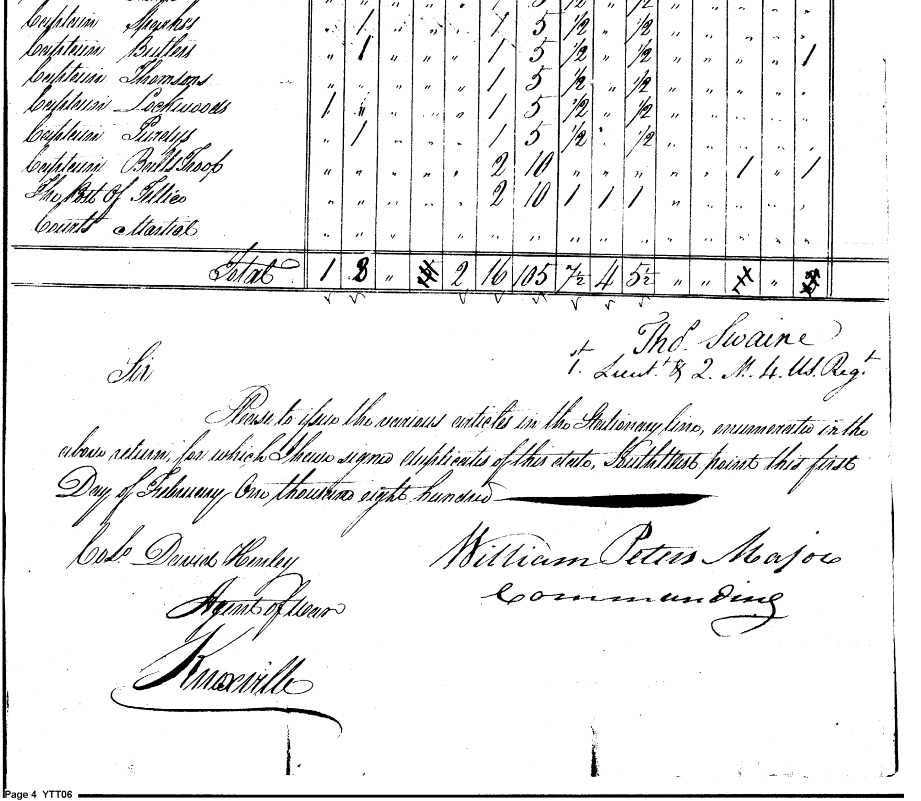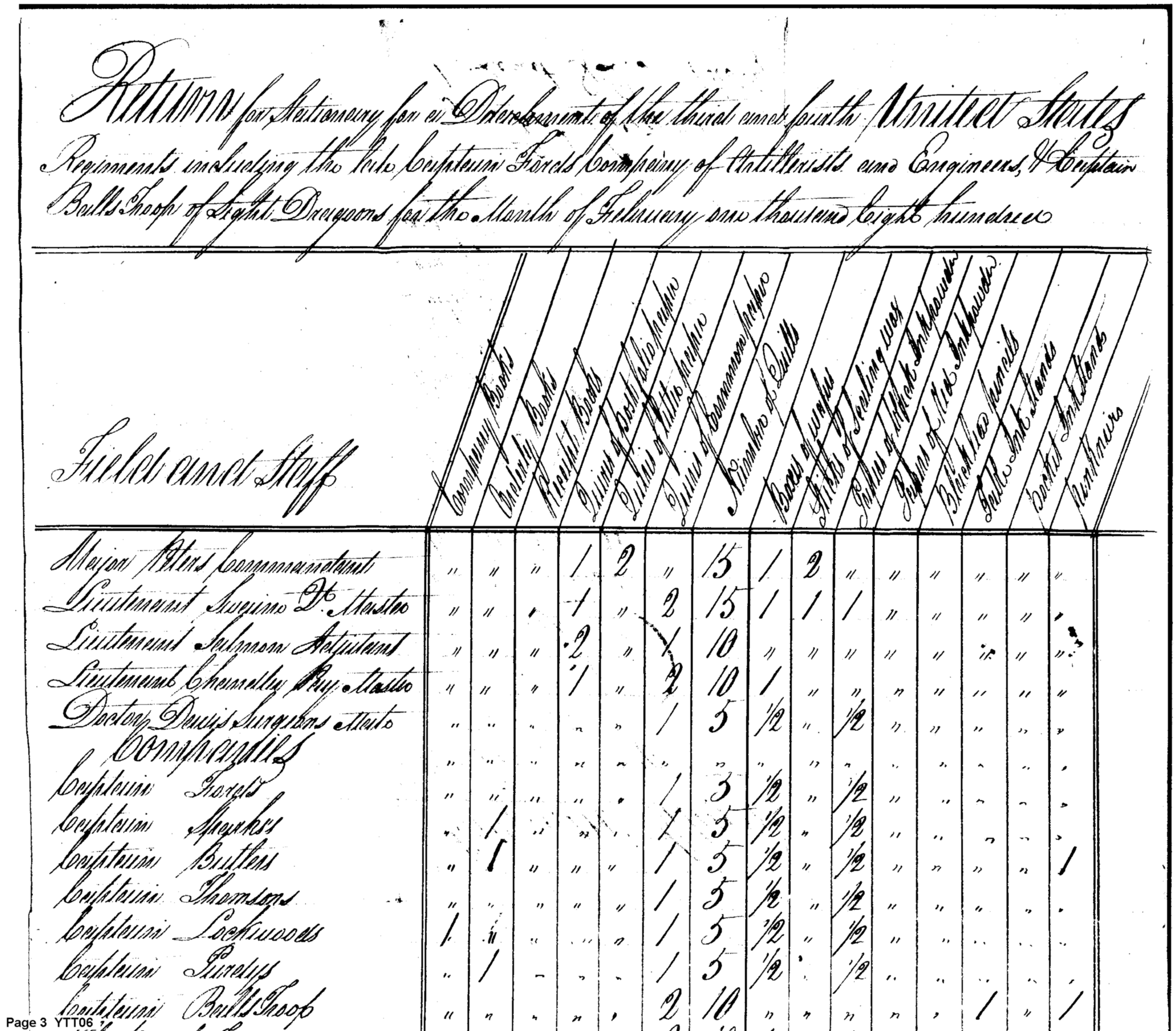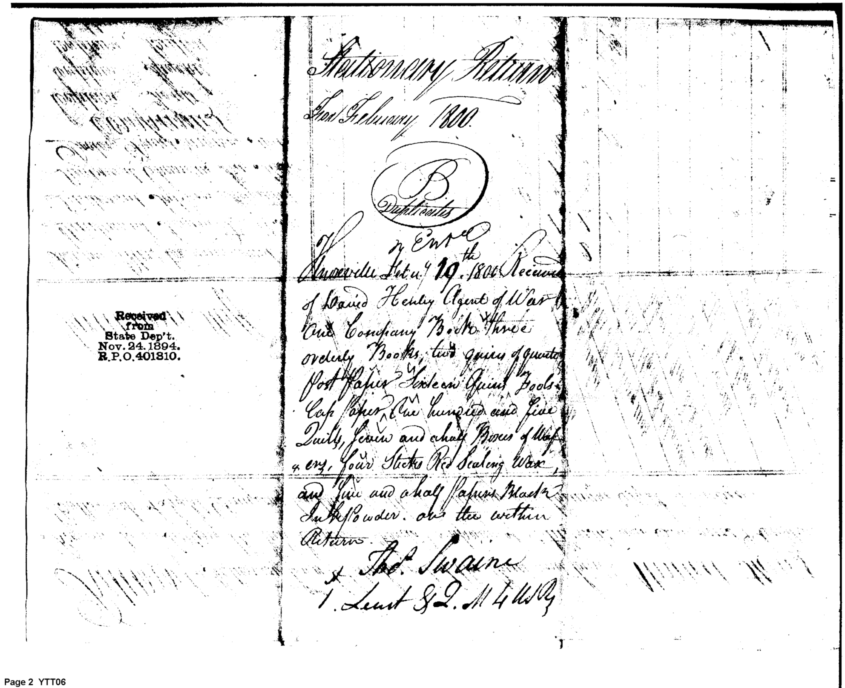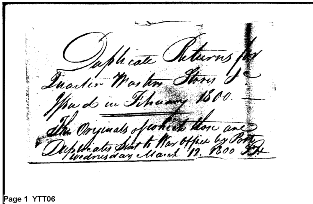 - Document: Duplicate Returns for the Quarter Master Stores in February 1800