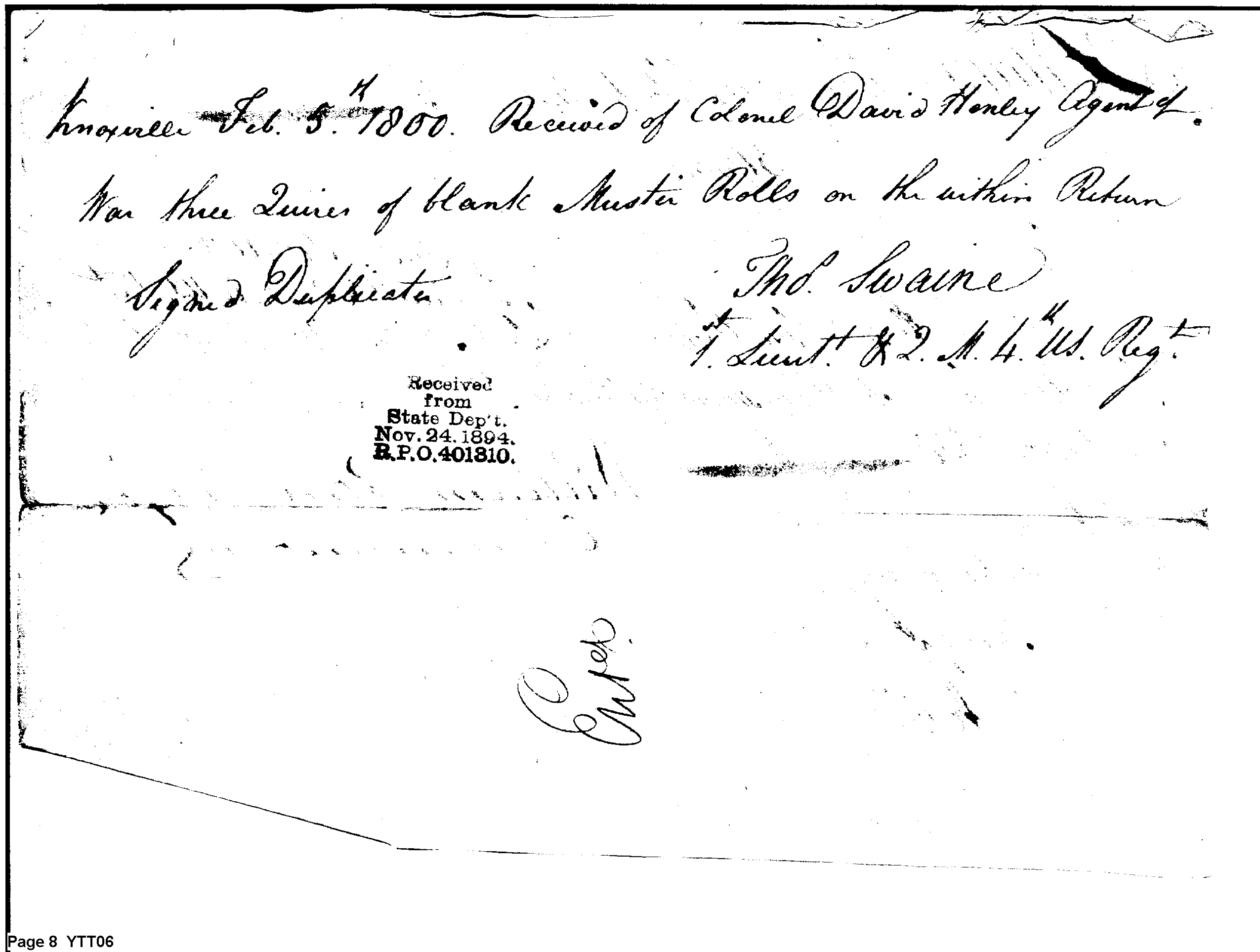 - In source: Collection: Post Revolutionary War Papers, 1784-1815. (RG94)