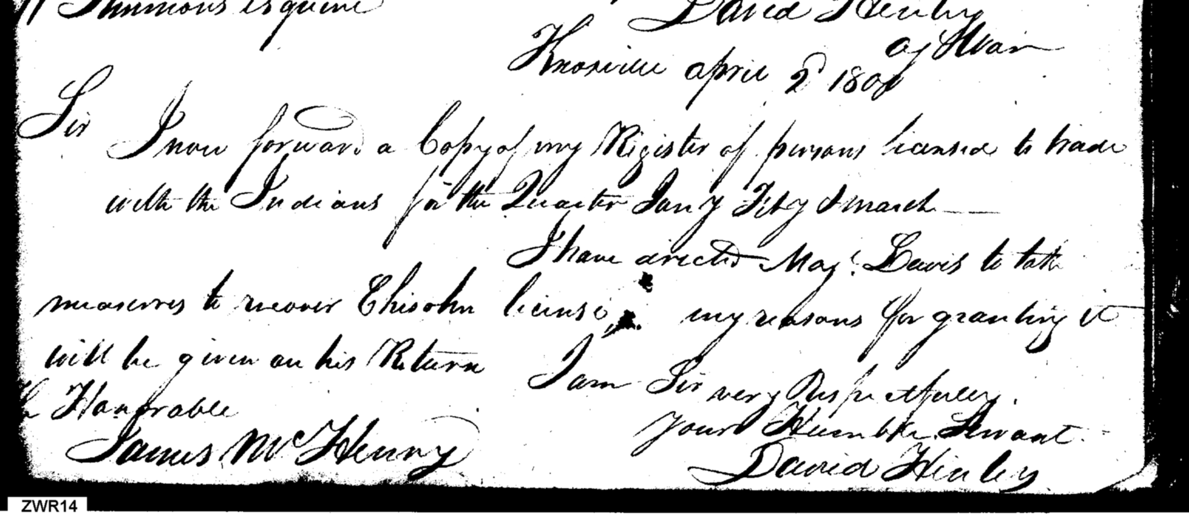 - In source: Collection: Letters Sent by David Henley, Agent of the War Department, May 1, 1799-May 7, 1800. (RG217)