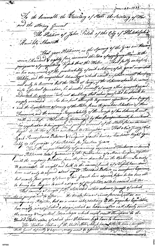 - Document: Petition of John Fitch Respecting His Steam-Powered Vessel