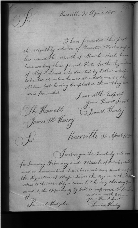 - In source: Collection: Letters Sent by David Henley, Agent of the War Department, May 1, 1799-May 7, 1800. (RG217)