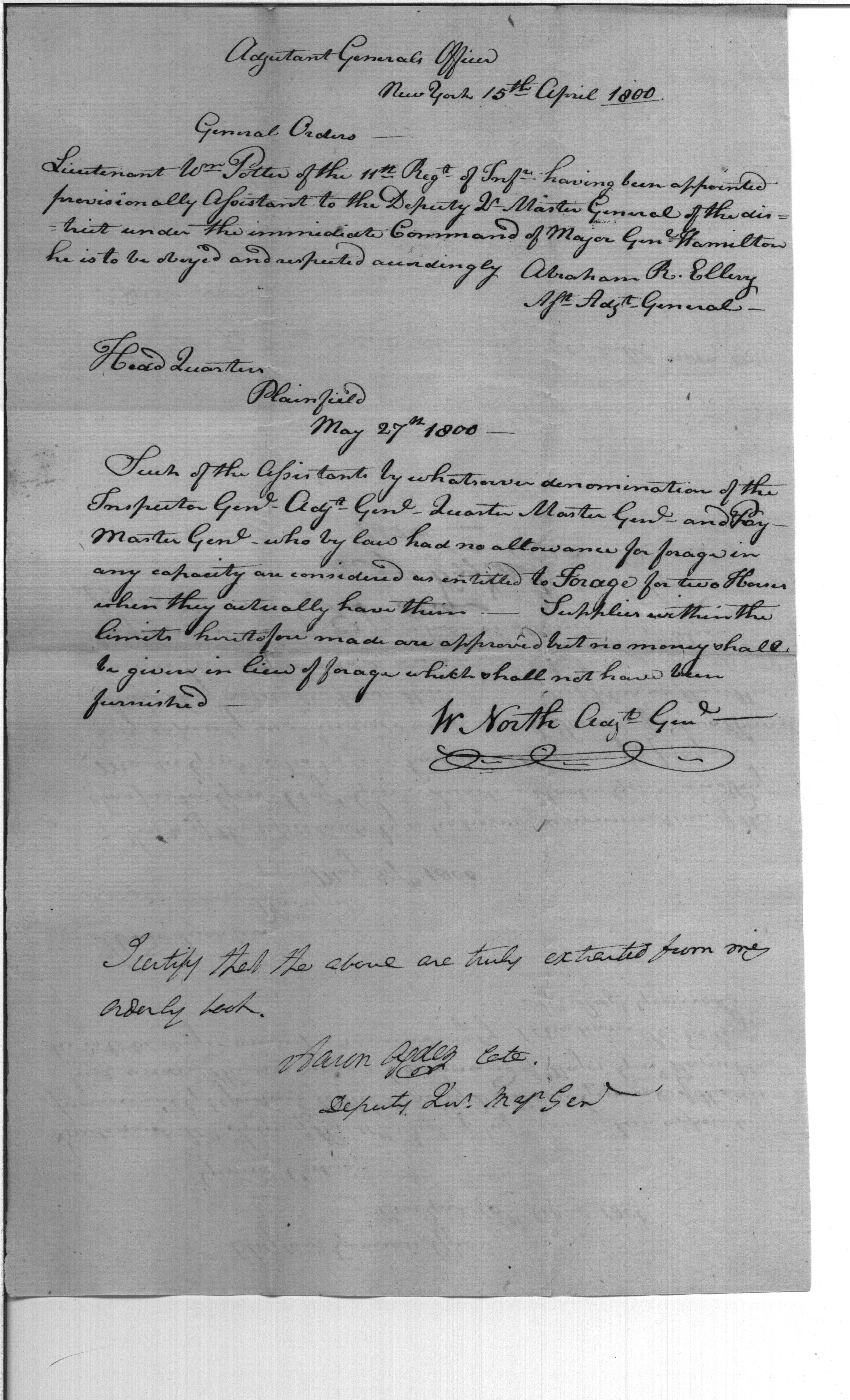 - Document: Appointment of Lieutenant William Porter as assistant to the Deputy Quartermaster General
