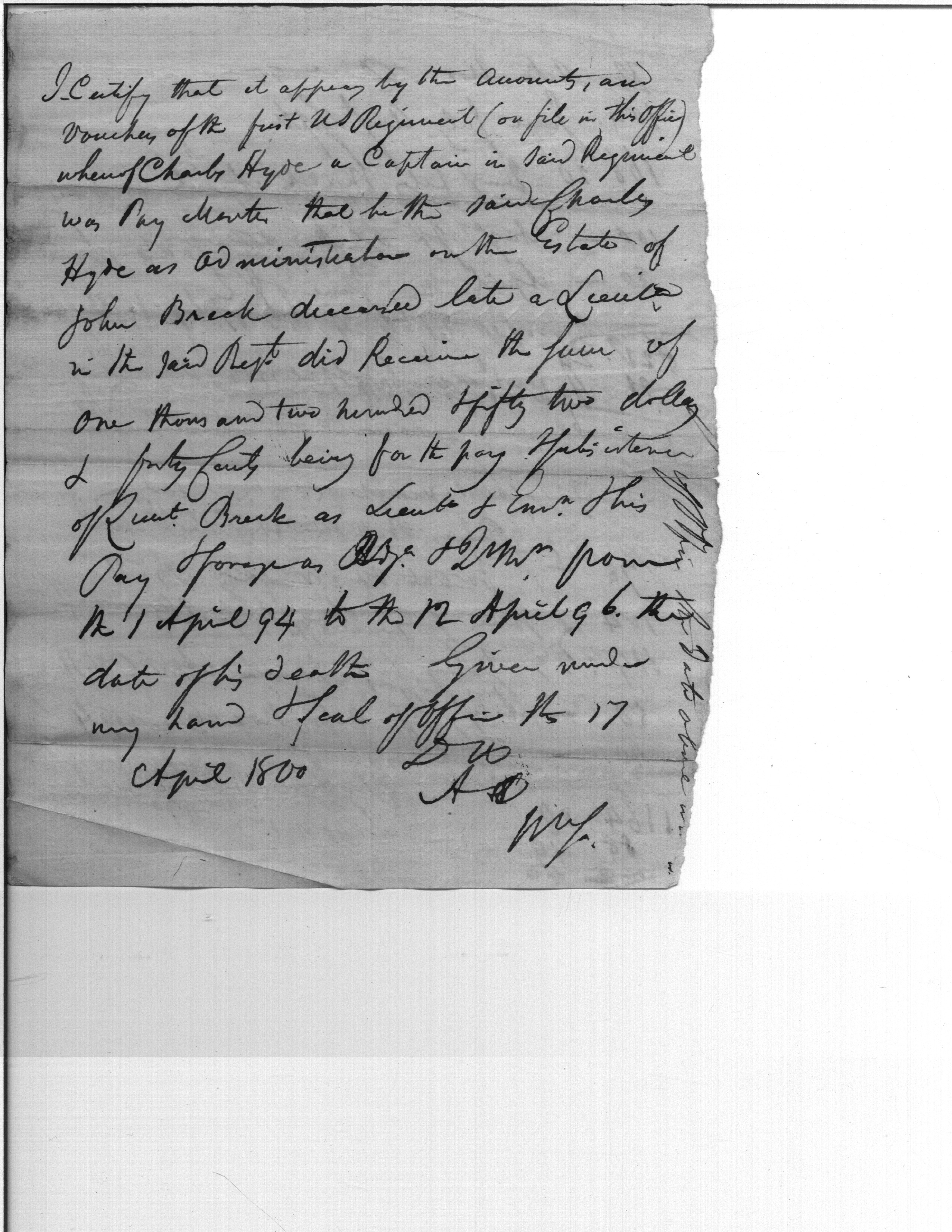 Pay of Lt. Breck, Deceased