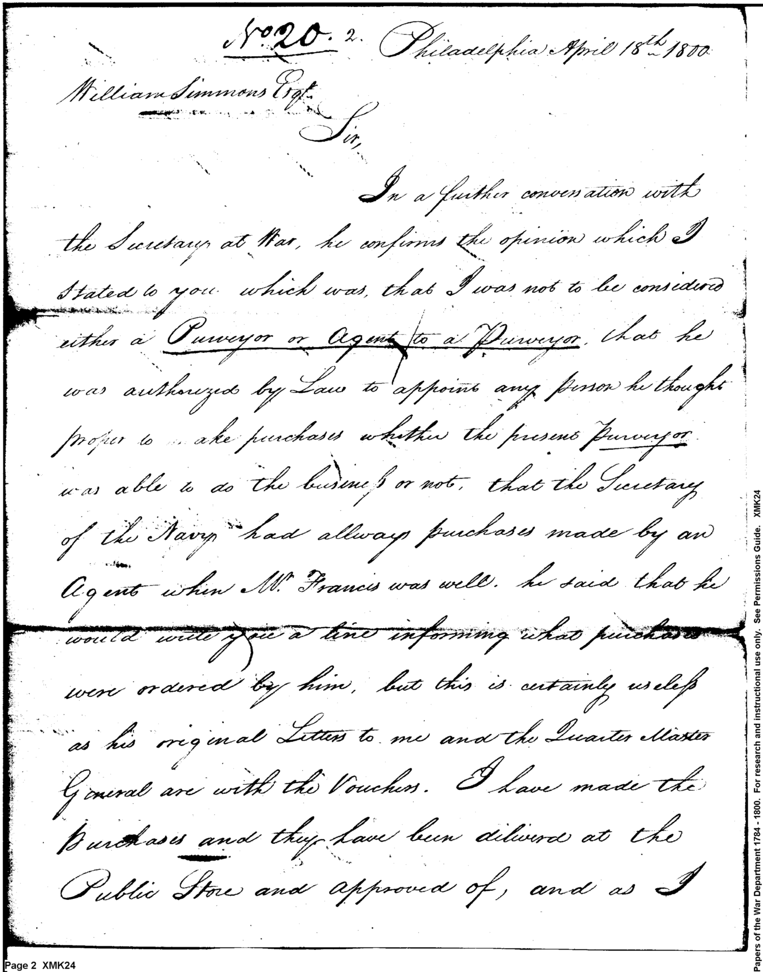 - Document: Joseph Miller is Not to be Regarded a Purveyor or Agent to a Purveyor