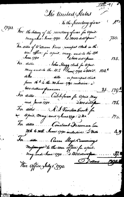 - Document: Salaries of the Secretary of War and his Gentlemen