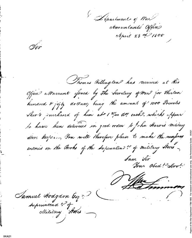 - In source: Collection: Letters Received by Predecessors of the Chief of Ordinance, 1797-1810. (RG156)