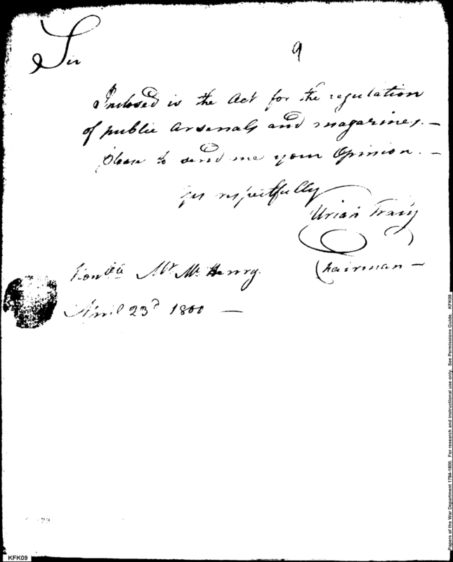 - Document: Enclosing a bill on the regulation of public arsenals and magazines