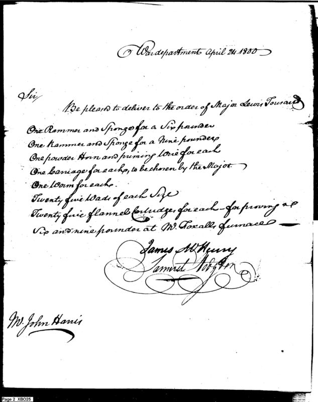 - Document: Request for Issue of Artillery Materials to Major Lewis Tousard