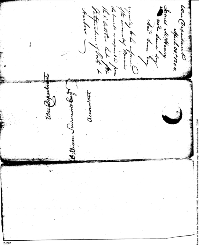 - In source: Collection: Post Revolutionary War Papers, 1784-1815. (RG94)