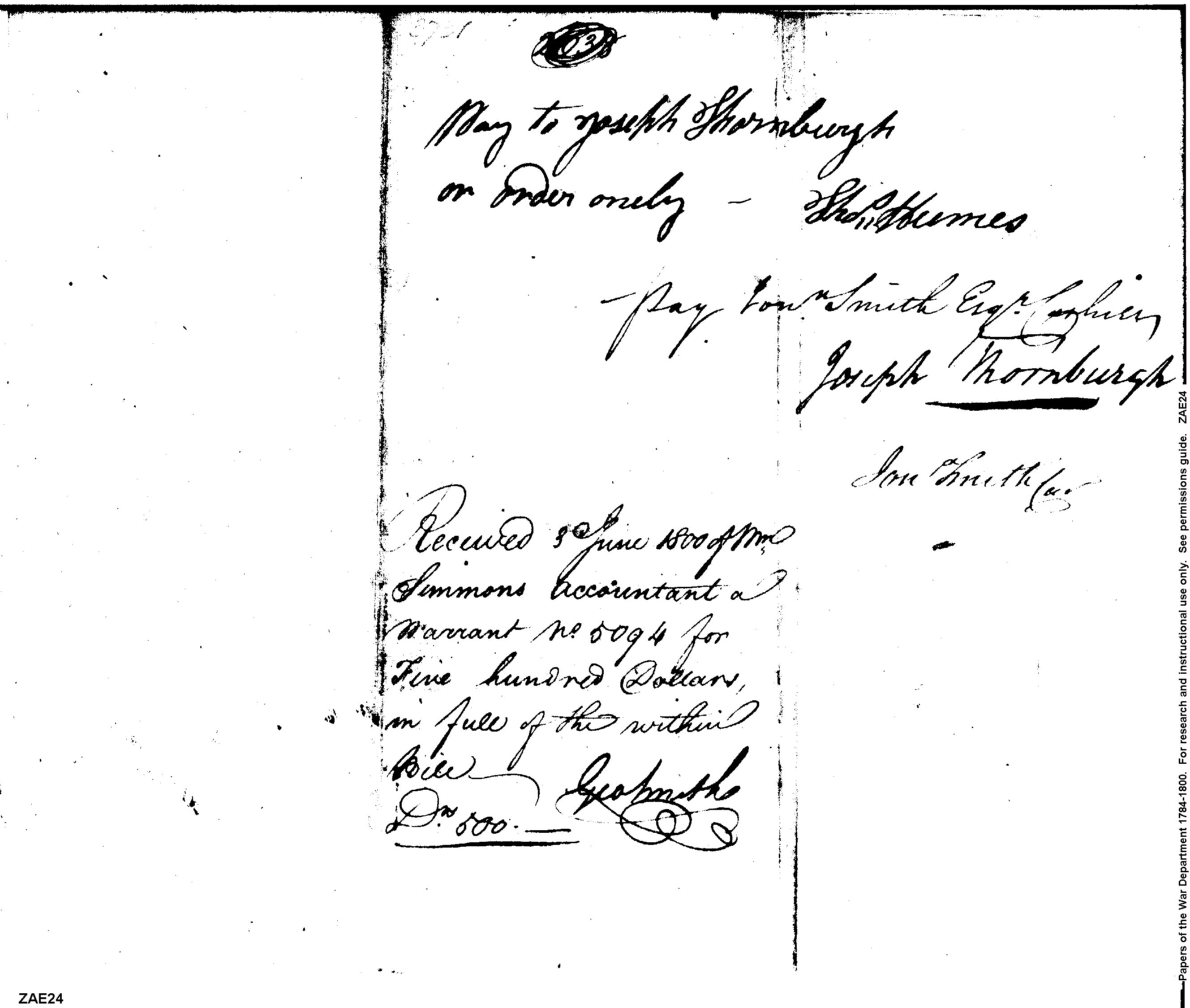 - Document: Payment to Thomas Hume for contracts in Indian Department