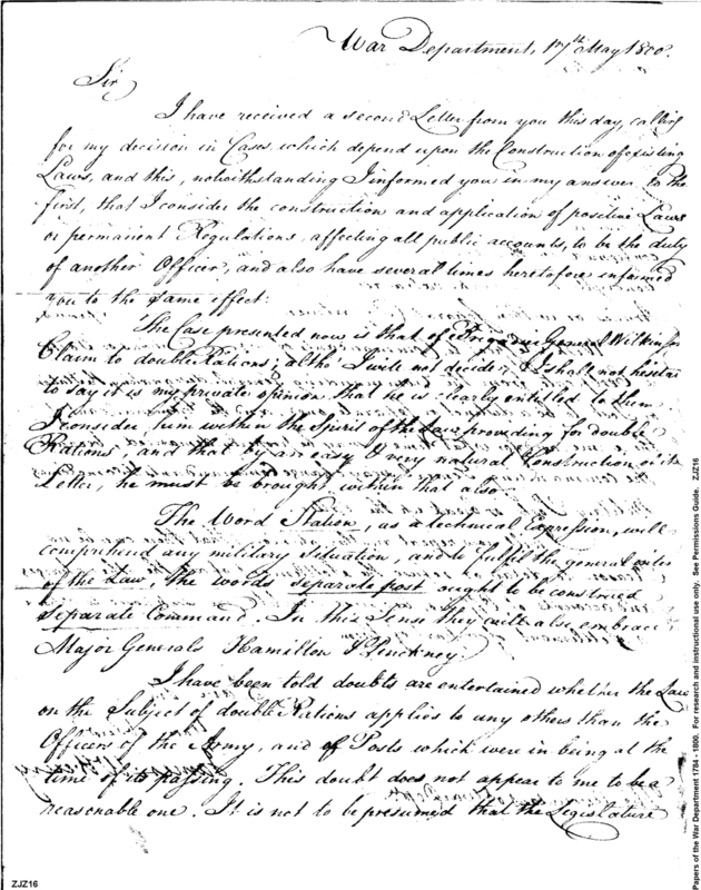 - In source: Collection: Post Revolutionary War Papers, 1784-1815. (RG94)