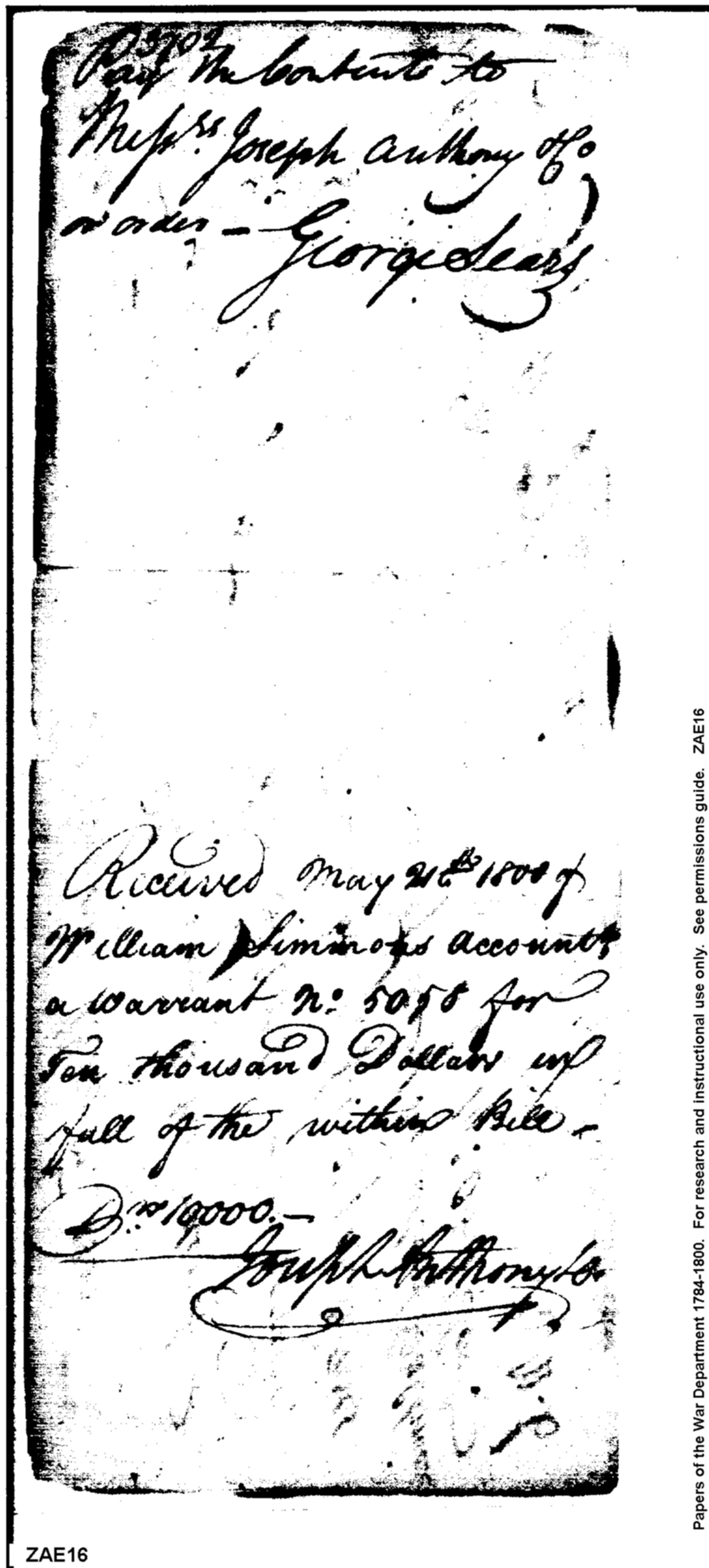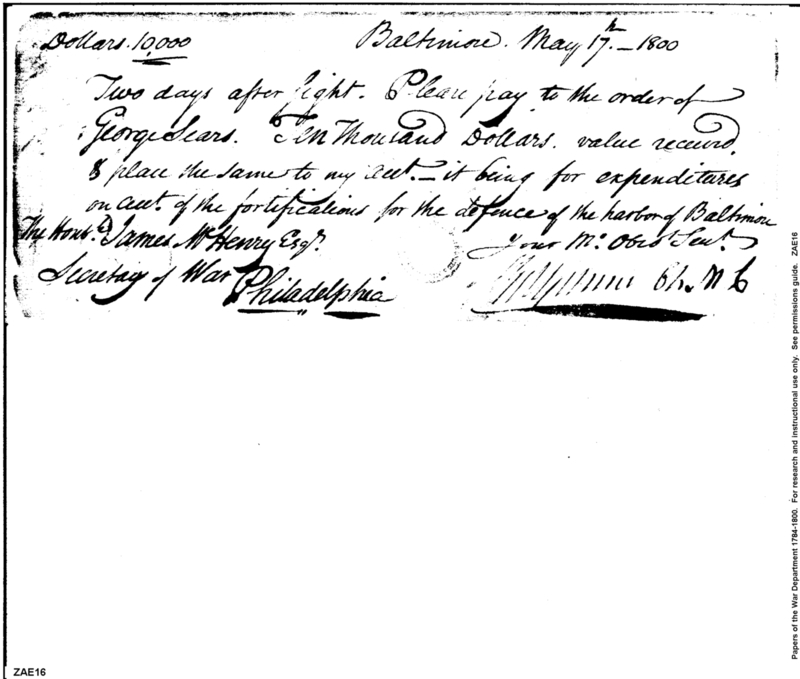 - Document: Payment George Sears for Expenditures for Fortifications at Baltimore Harbor