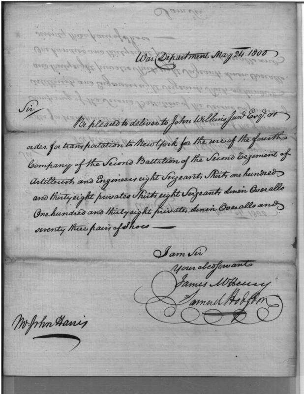 - Document: Request for Issue of Clothing to New York for Use By Men of the 2d Regiment of Artillerists and Engineers