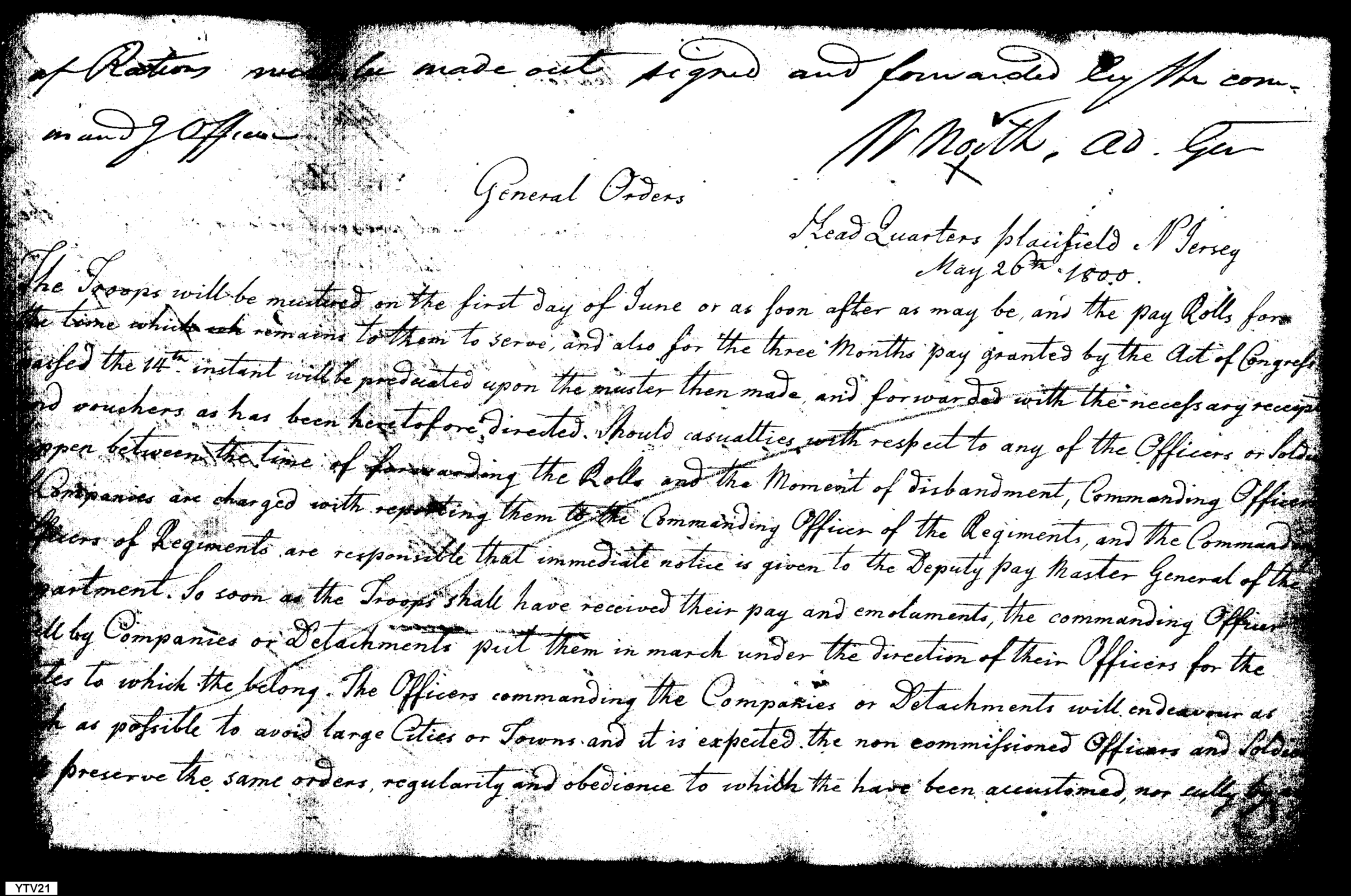 - In source: Collection: Orderly Book of the Deputy Adjutant General to District Commander Maj. Gen. Charles C. Pinckney, Apr-Jun 1800. 1 vol (no. 383/267). (RG98)