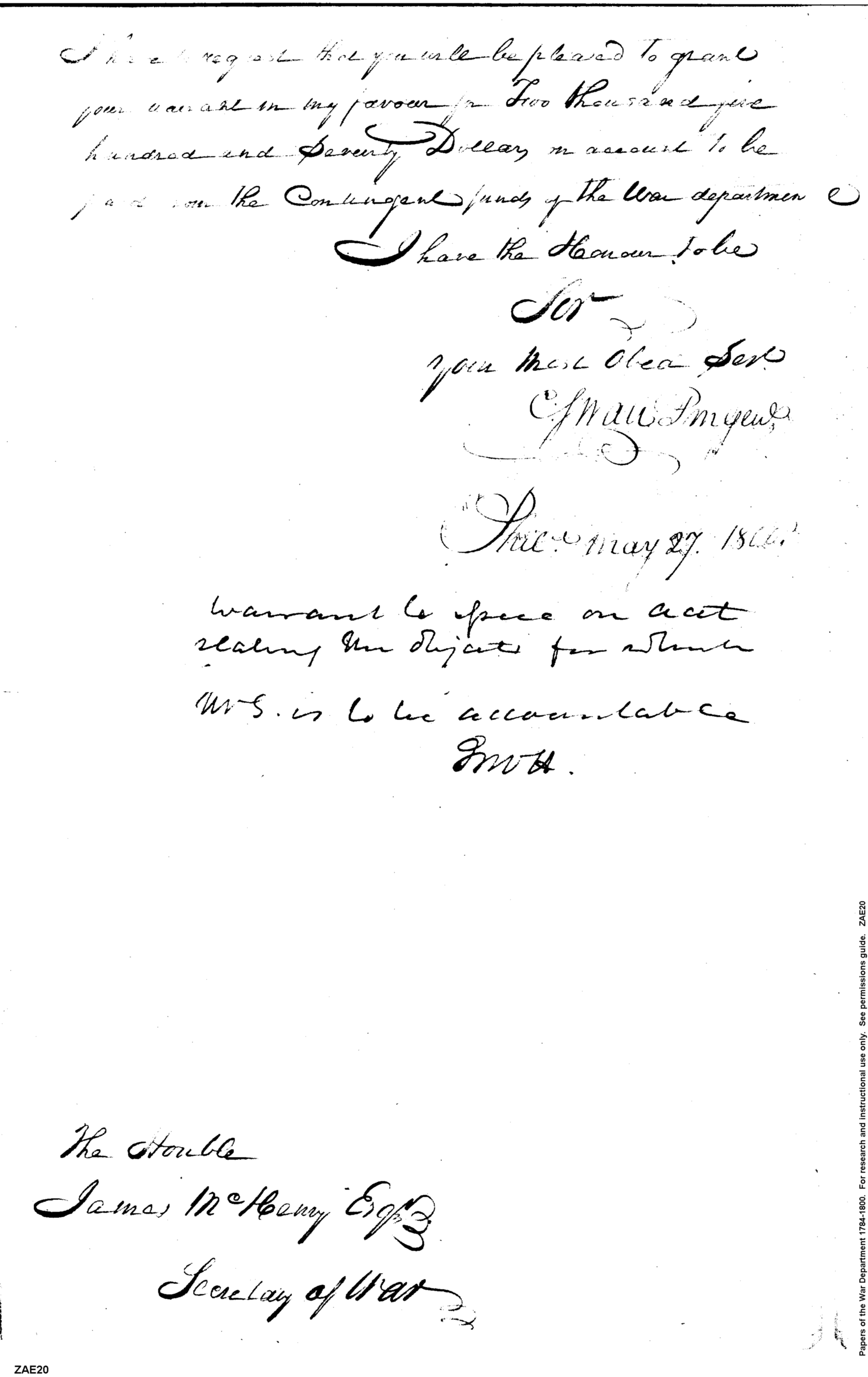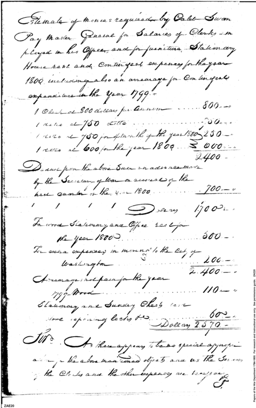 - Document: Receipt of William Simmons a Warrant for Payment of Salaries, Rent, Furniture, Stationery
