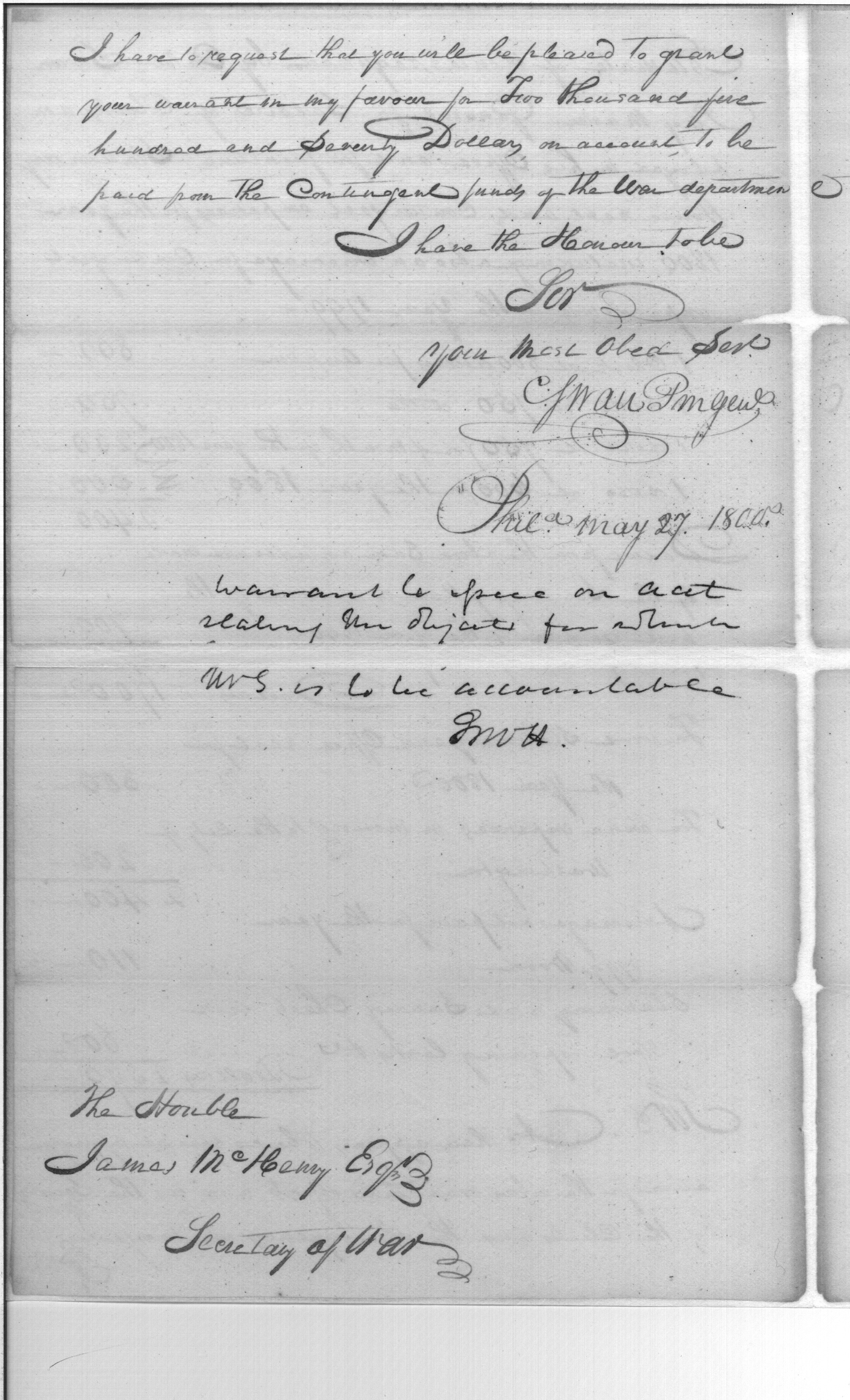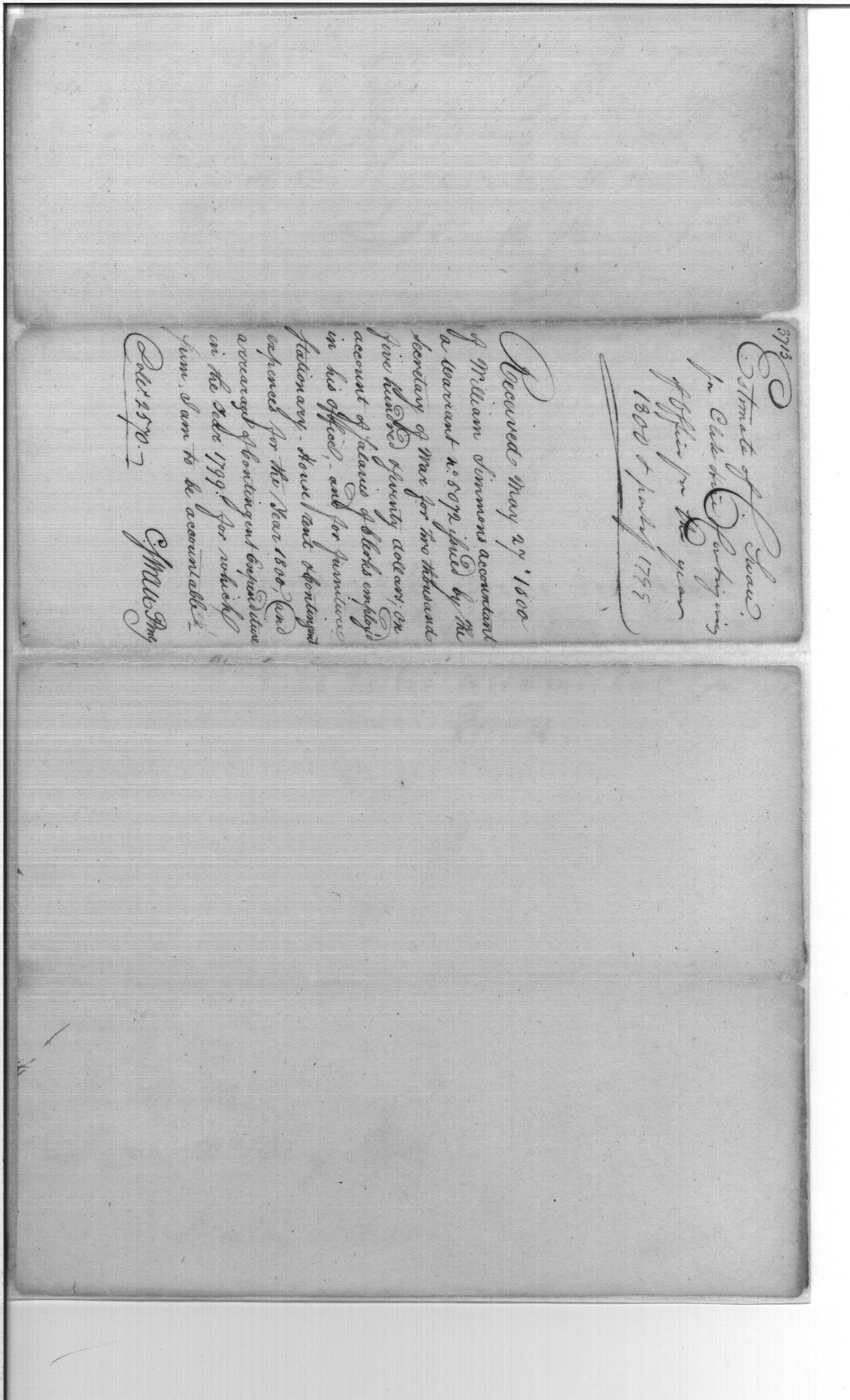 - Document: Receipt of William Simmons a Warrant for Payment of Salaries, Rent, Furniture, Stationery