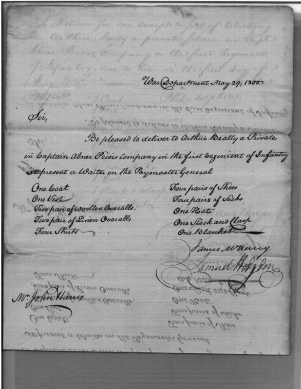 Document ViewerRequest for Issue of Clothing & Blanket for a Private of the 1st Infantry Regiment, With Return