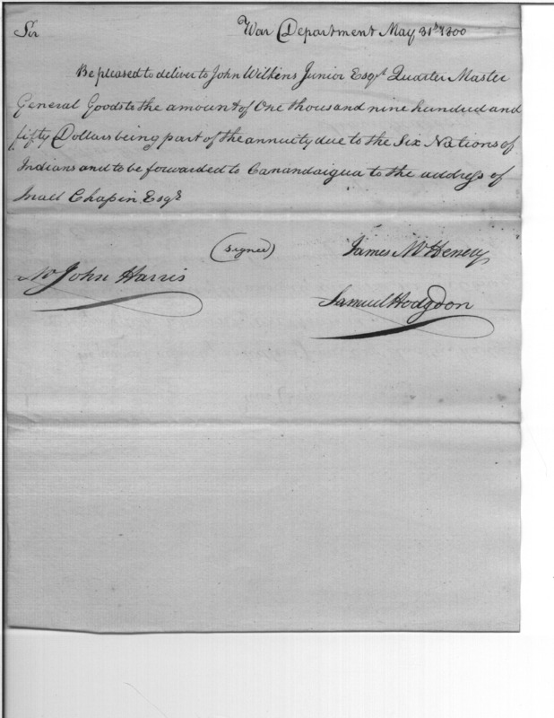 - Document: Request for Issue of Goods Due the Six Nations of Indians